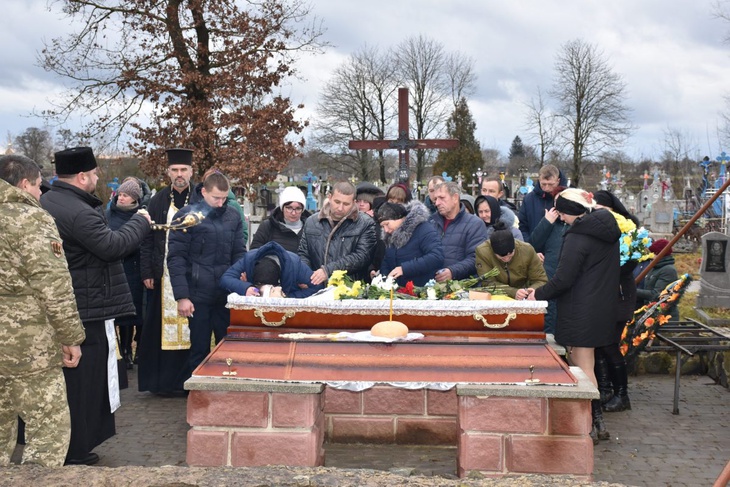 «Церемонію прощання священнослужителі здійснили на подвір’ї батьківської хати Героя у селі Мартинівка. Велелюдною ходою з прапорами та квітами у руках й під звуки духового оркестру проводжали Захисника від рідної домівки. Бійця відспівали у храмі Успіння Пресвятої Богородиці та поховали на кладовищі у сусідньому селі Озеряни», - повідомили у громаді.