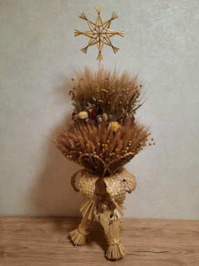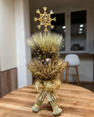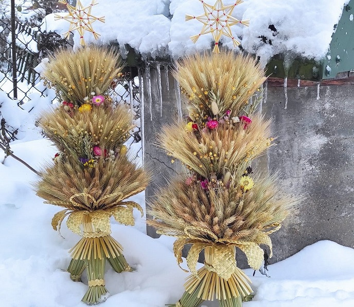 "Я робила різні форми дідухів, та зараз дотримуємося єдиної – виготовляємо у формі снопа. Звичайно, можна робити гілочки, щоб було деревце, але на це просто бракує часу. Вже після Різдва я буду сидіти і творити те, що хочеться. Квітів у декоруванні теж поганих немає.