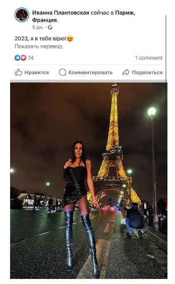 Іванна написала українською мовою, що подорож до Франції була прекрасною, а у 2023-й рік вона вірить.