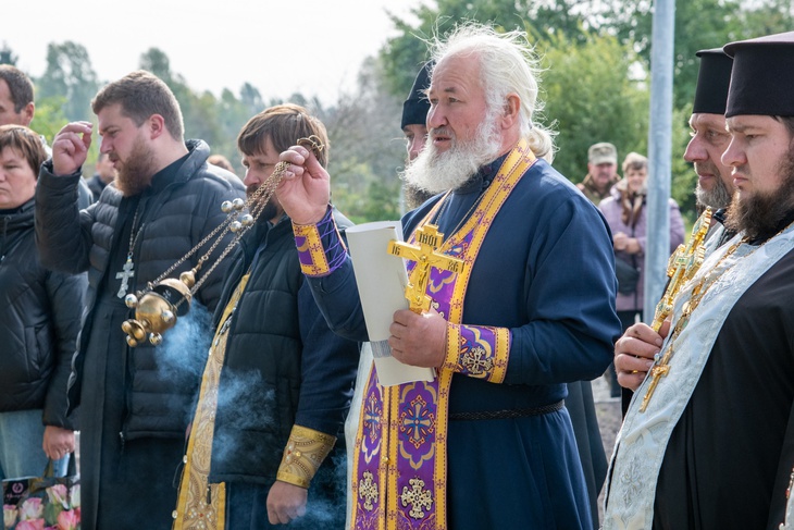 В рамках заходу священники Православної Церкви України склали молитву за упокій душ полеглих Героїв та освятили це пам’ятне місце.До підніжжя стели лягли квіти і вінки, на завершення присутні спільно виконали Державний Гімн України.