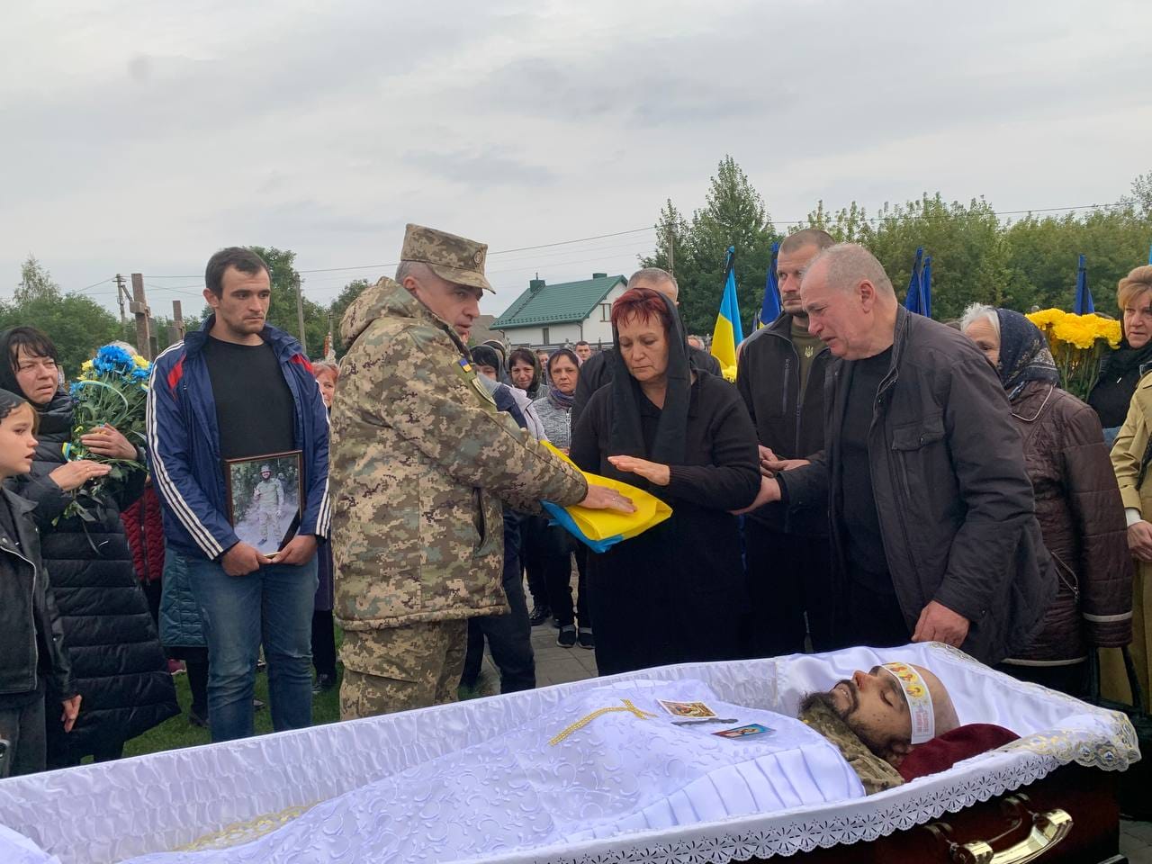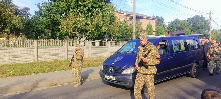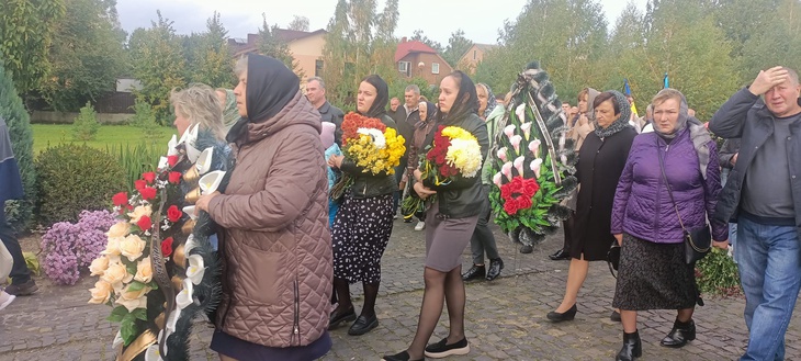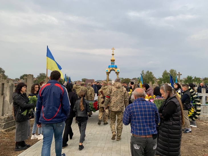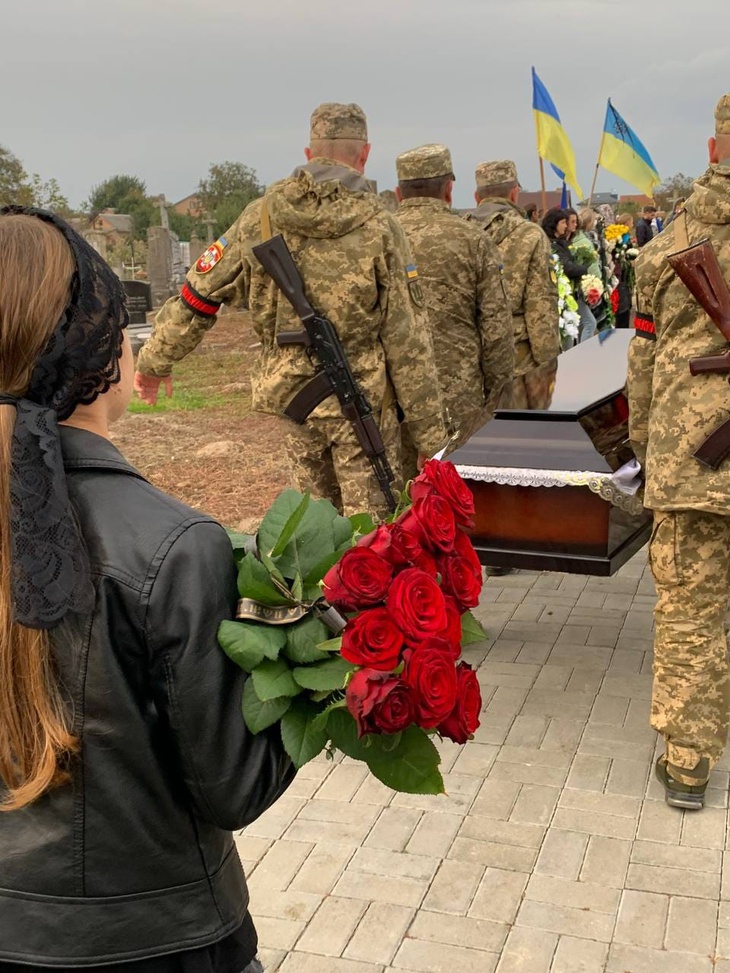 Герою віддали військові почесті, матері захисника вручили Державний Прапор України, а у небо гучно летіли трикратні салютні постріли.