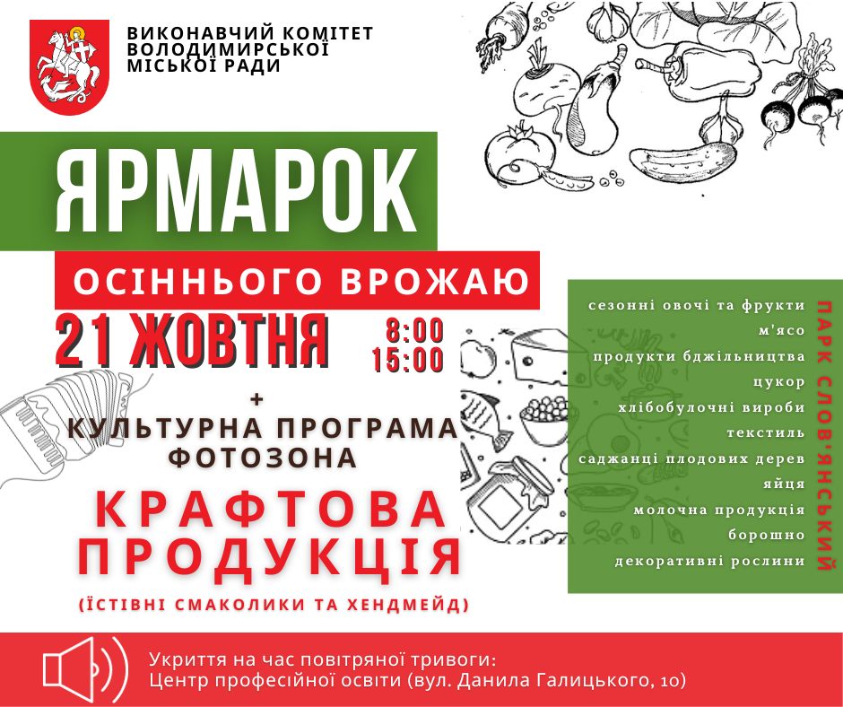 Ярмарок відбудеться у суботу, 21 жовтня, з 8 до 15 год (парк Слов'янський), - йдеться на сайті громади, повідомляє ВСН.