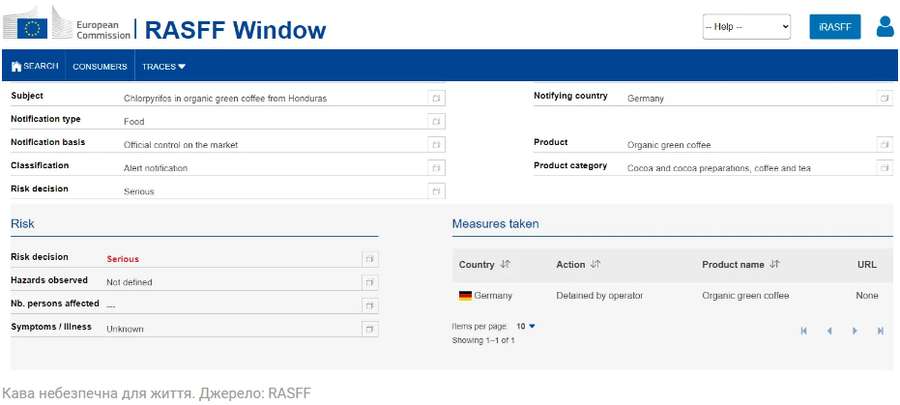 «Варто наголосити, що хлорпірифос в органічній зеленій каві (походженням з Гондурасу) наразі виявлений лише в обмеженій партії в Європі і поки що не відомі всі обставини щодо цієї події.