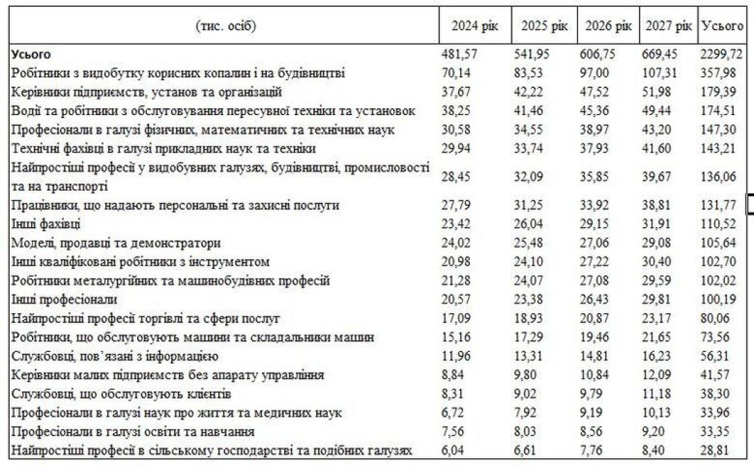 Так, у Міністерстві економіки оприлюднили проєкт «Розрахунку потреб у фахівцях і робітничих кадрах на ринку праці за видами економічної діяльності та професійними групами на 2024-2027 роки». Документ було опубліковано для обговорення на сайті Федерації профспілок України.