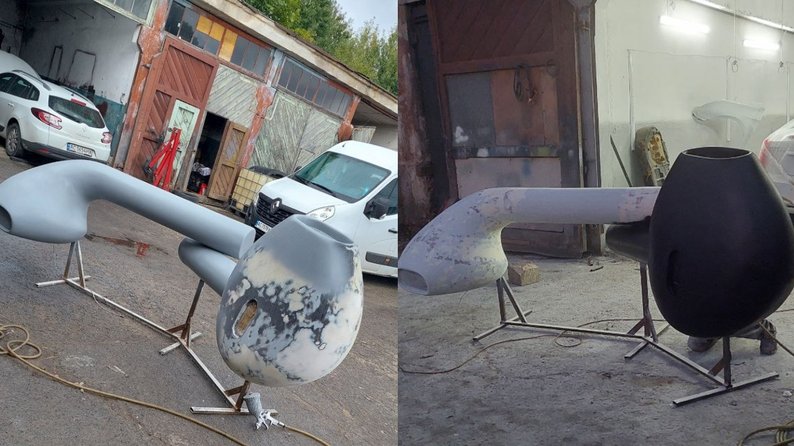 «Частина об'єкта створена з поліпропіленової труби, яка закопана в землю і витримує доволі велике навантаження. А потім зверху ще воно покрите скловолокном, є армування металом, всередині — металева ніжка, на якій лежить основа», — розповів скульптор.