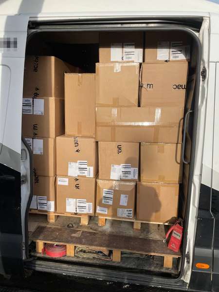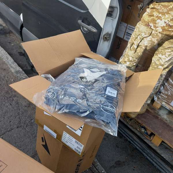 Інформація про нові куртки, футболки, штани, шорти, кросівки тощо, загальною кількістю понад 2 тисячі одиниць, в товаросупровідних документах не значилася. Були в бусі і ящики з товарами гуманітарної допомоги, щоправда, небагато.