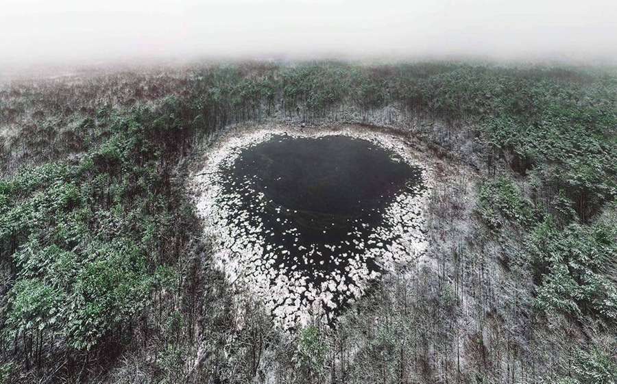 Неймовірної краси озеро у вигляді серця знаходиться у заповідній зоні Шацького національного природного парку. Це озеро Навраття, воно є найменшим серед системи Шацького поозер’я.