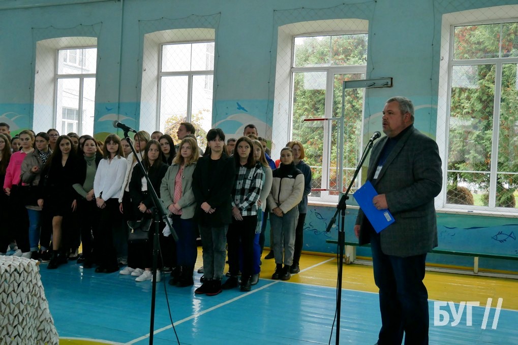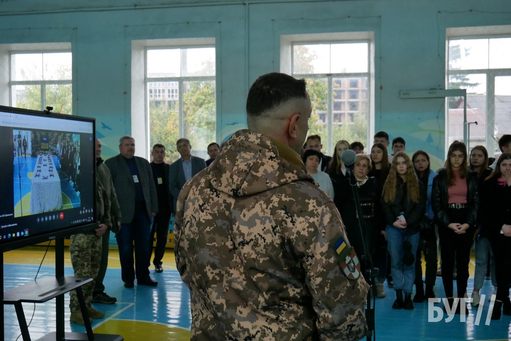 25-го жовтня на урочистій лінійці директори коледжів подякували запрошеним захисникам із 55 зенітно-ракетного полку, рвучивши залізних пташок.