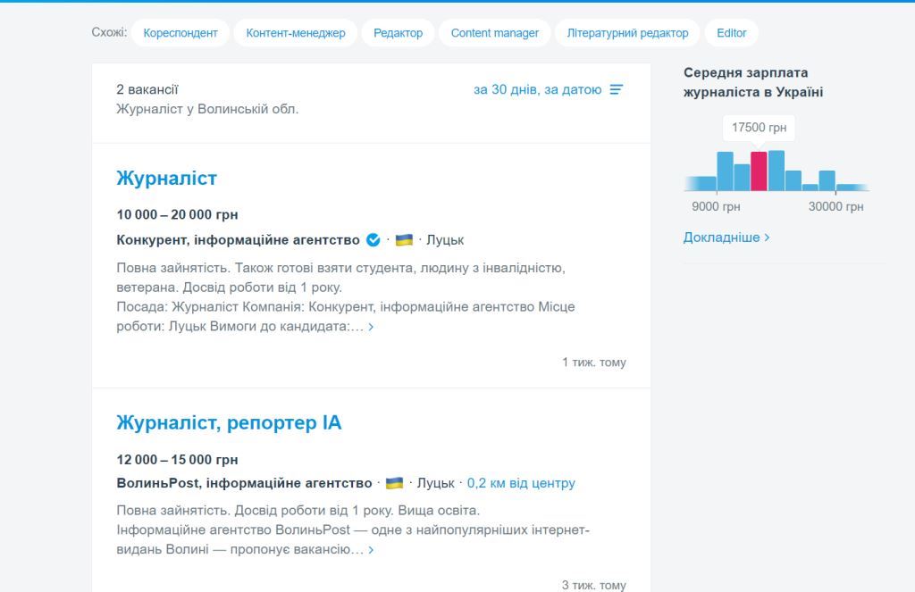 Зауважимо, що на Волині зарплата журналістів, які мають значно більше обов’язків та роботи за даними Work.ua коливається від 10 до 20 тисяч гривень.