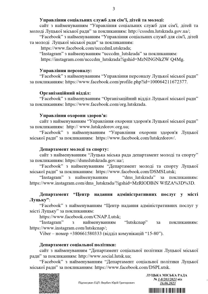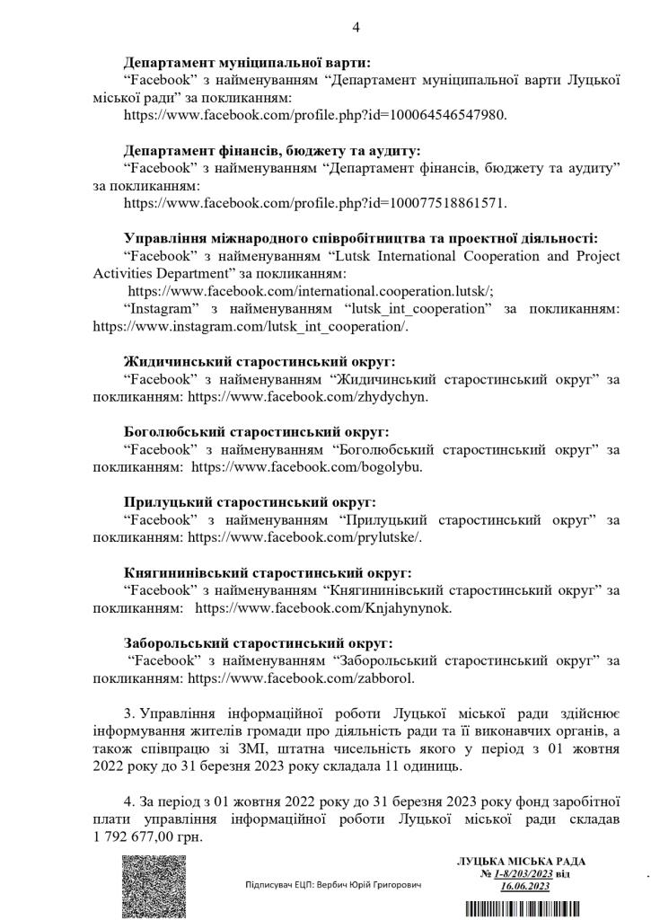 Заступник начальника управління інформаційної роботи Луцької міської ради Олександр Олішевський у коментарі для інтернет-видання «Волинь Online» пояснив, що інформаційний відділ наповнює сайт міськради (лише декілька рубрик – оголошення, відеоновини, фоторепортажі та оперативна інформація, і інші рубрики наповнюють інші структурні підрозділи міськради), сторінку у «Фейсбуці» та «Телеграмі».