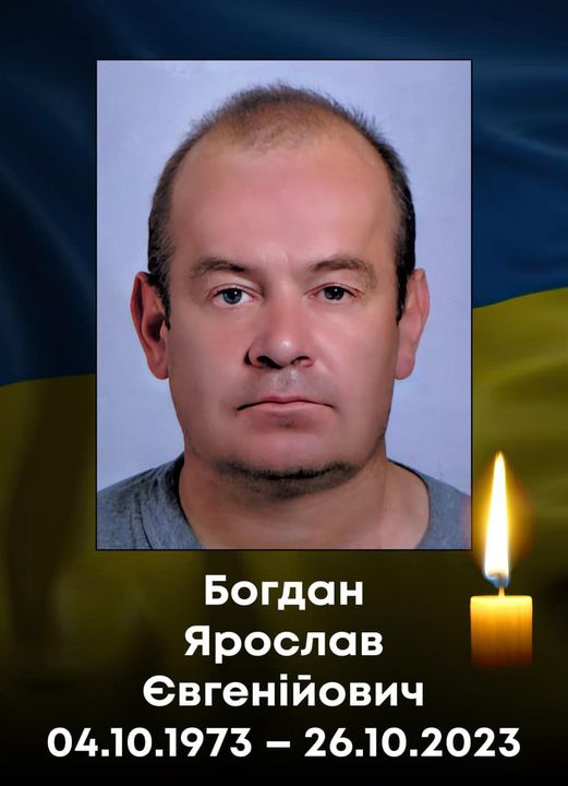 Ковельчанин Богдан Ярослав Євгенійович, 4 жовтня 1973 року народження, помер 26 жовтня 2023 року в лікарні Львова внаслідок важкого поранення на фронт.