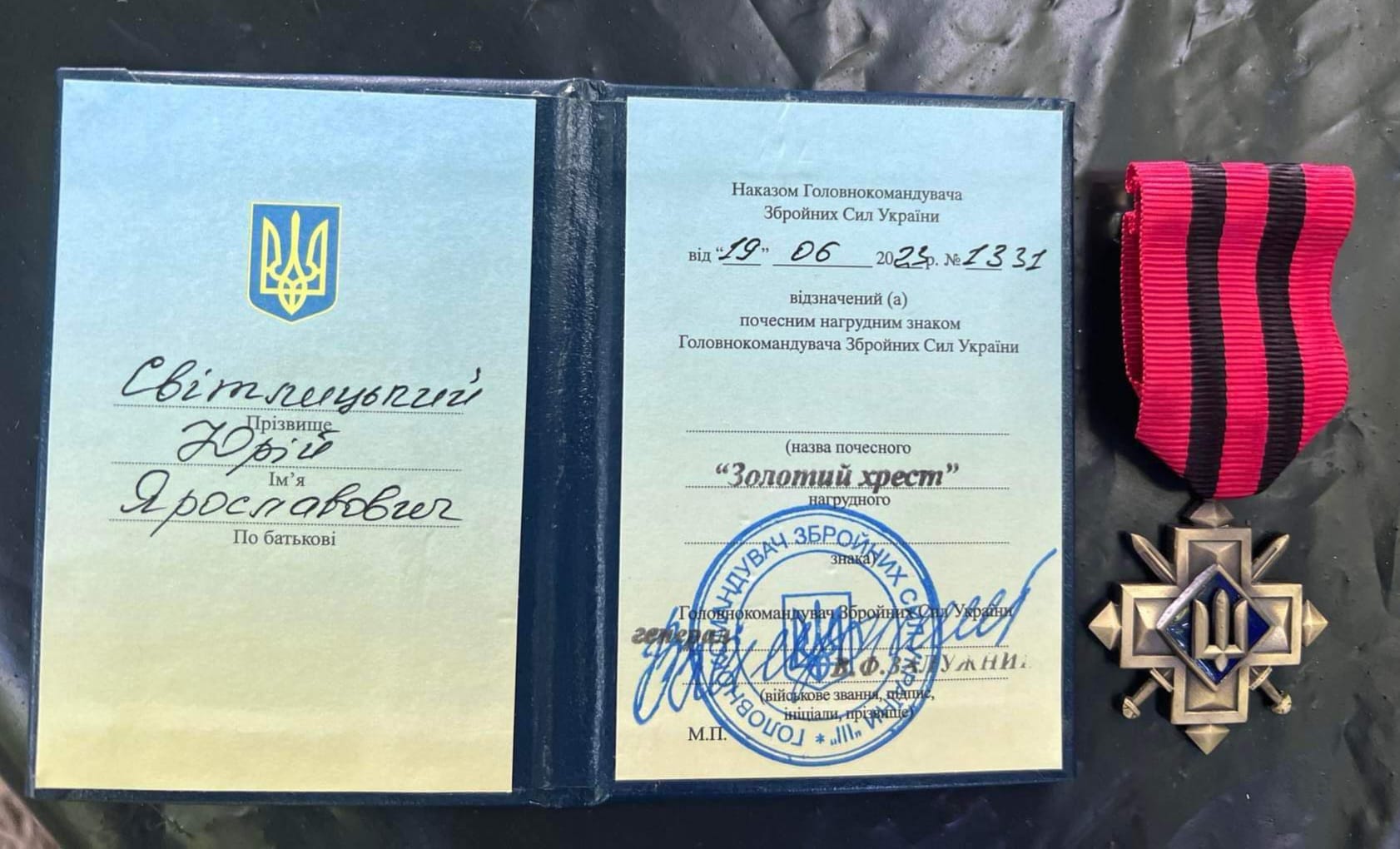 Почесний нагрудний знак «Золотий хрест» від Головнокомандувача Збройних сил України Валерія Залужного отримав 39-річний мешканець села Литовеж Литовезької територіальної громади Юрій Світлицький.