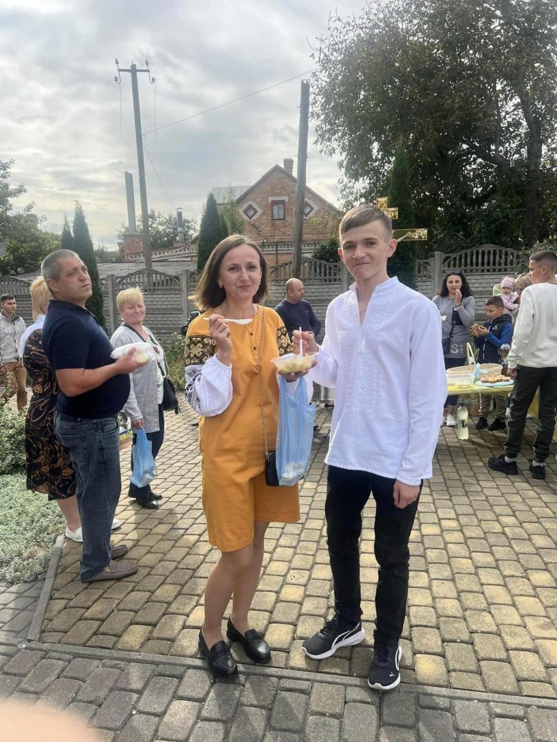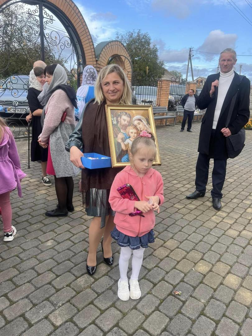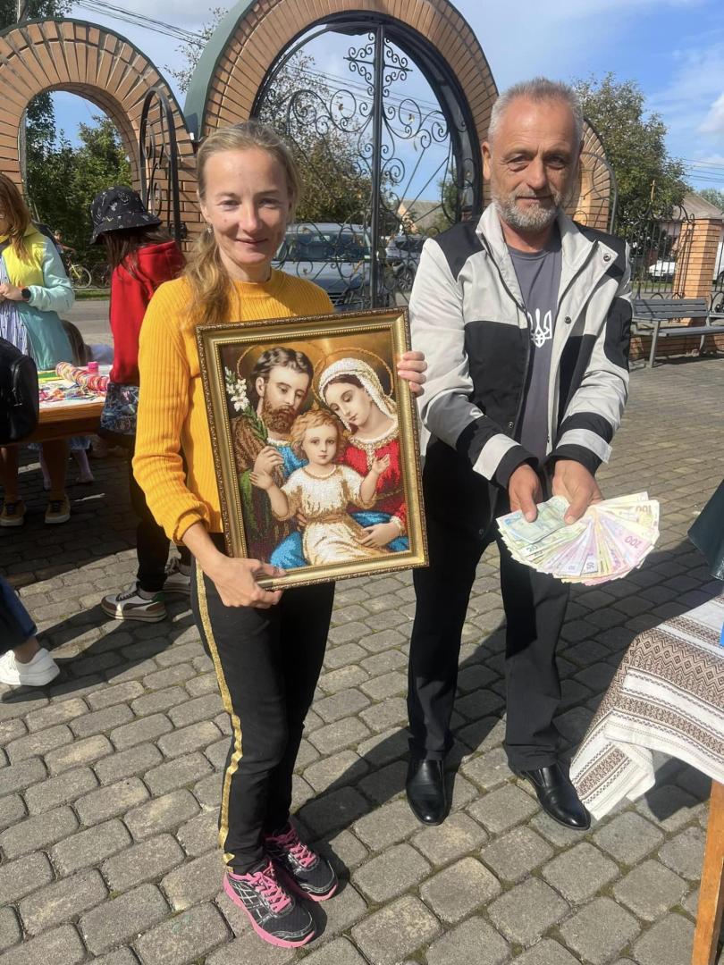 До слова, участь у ярмарку також взяв військовий з Боратина Юрій Фурман, щоправда дистанційно. Нині чоловік несе службу у лавах ЗСУ, однак вишиту ним ікону презентувала на заході його сім’я. Вишитий образ Пресвятої Родини, як оберіг родини та символ віри, любові, гармонії та затишку придбали односельці та передали у місцевий храм.