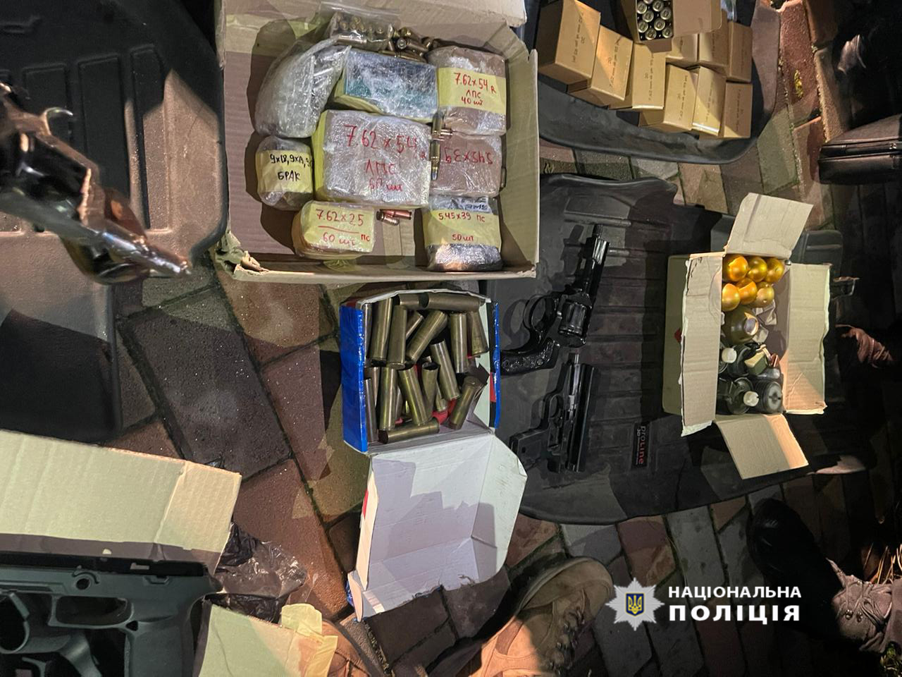 За адресами проживання, в автотранспорті й місцях зберігання та переробки зброї вилучили: гвинтівки, рушниці, пістолети, складові запчастини до зброї (магазини, рамки, стволи), понад 10 кілограмів пороху, понад півтори тисячі одиниць набоїв різних калібрів, а також гільзи, патрони та кулі. Крім того, вилучено гранати, запали до них, гранатомет з гранатометними пострілами, кейси для зберігання пістолетів.