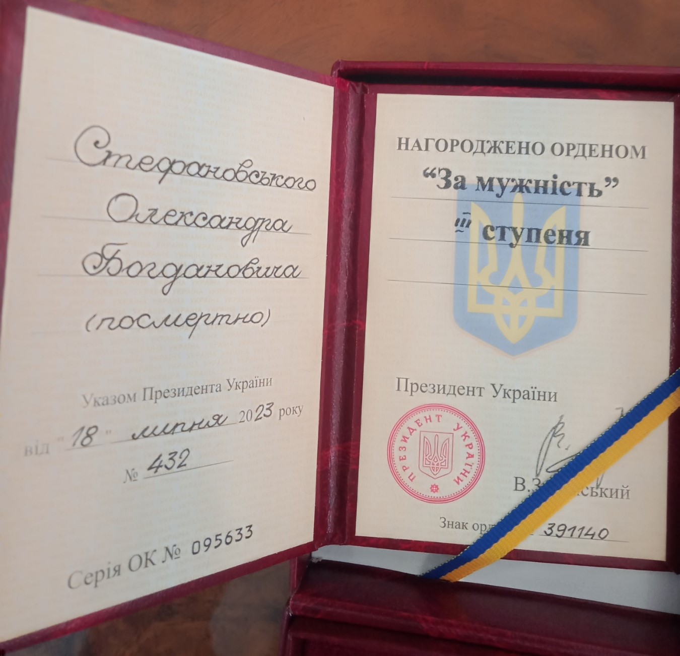 «Указом Президента України від 18 липня 2023 року № 432 жителя села Коршів Стефановського Олександра Богдановича нагороджено орденом «За мужність» ІІІ ступеня (посмертно). Нагороду вручили родині загиблого воїна», – йдеться в повідомленні.