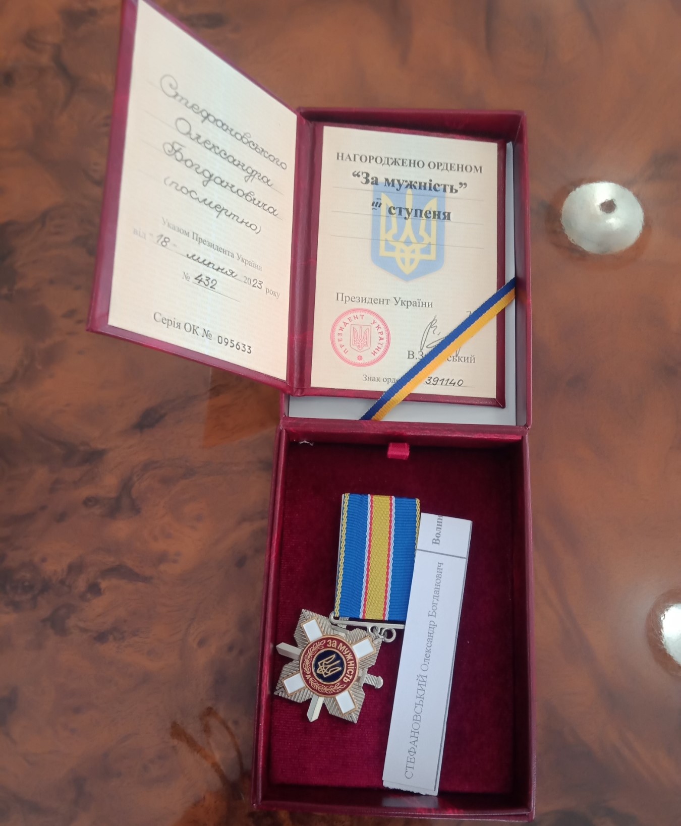У Луцькому районі родині загиблого Героя Олександра Стефановського вручили його орден «За мужність».