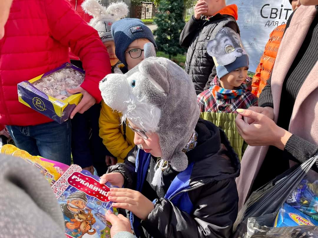 Після завершення виступу дітям вручили гостинці від громадських організацій міста та від закладу швидкого харчування. Солодощі, іграшки та книги від громади передали начальниця управління соціального захисту населення Людмила Якименко та начальниця міського центру соціальних служб Юлія Янюк.