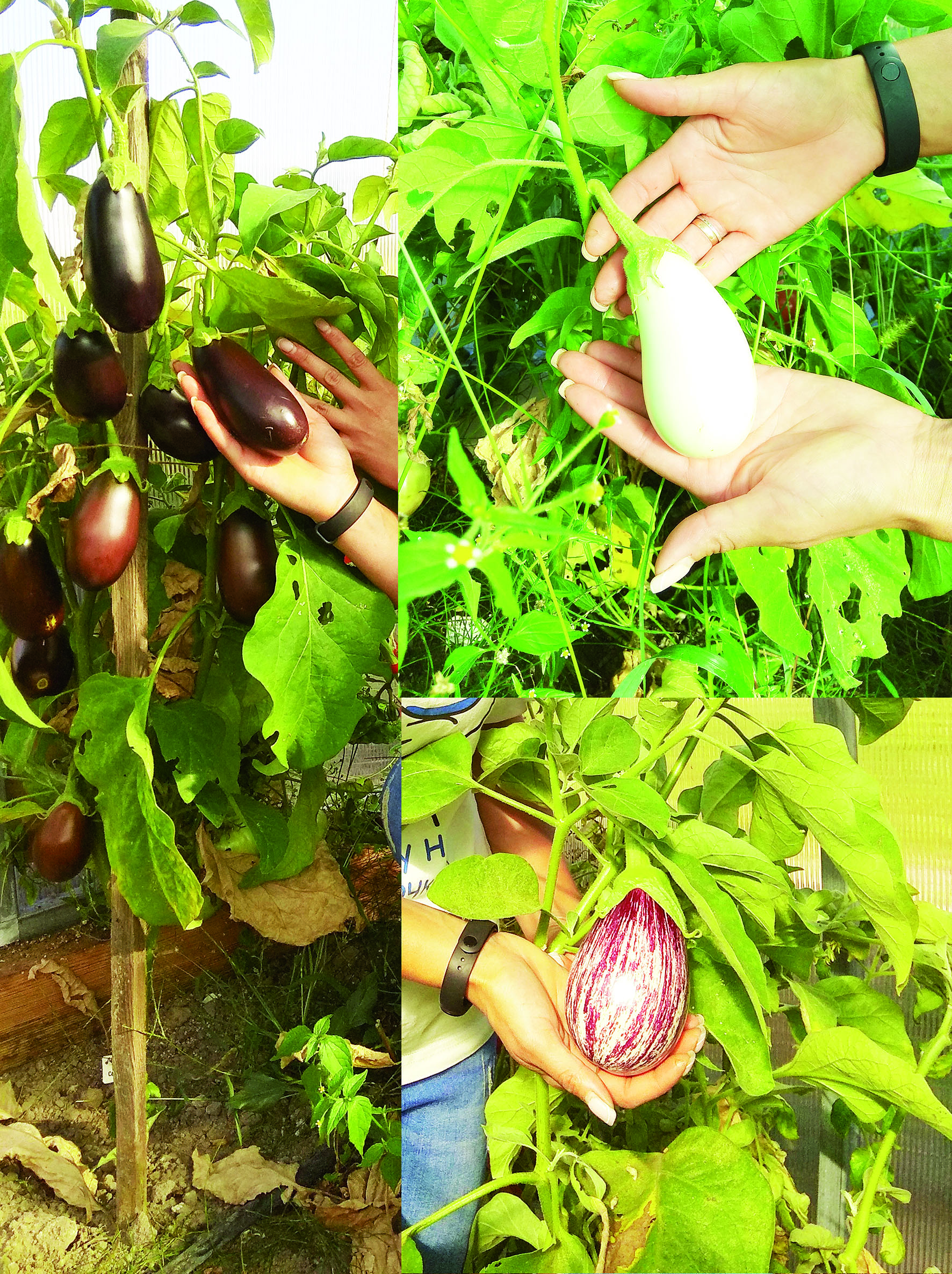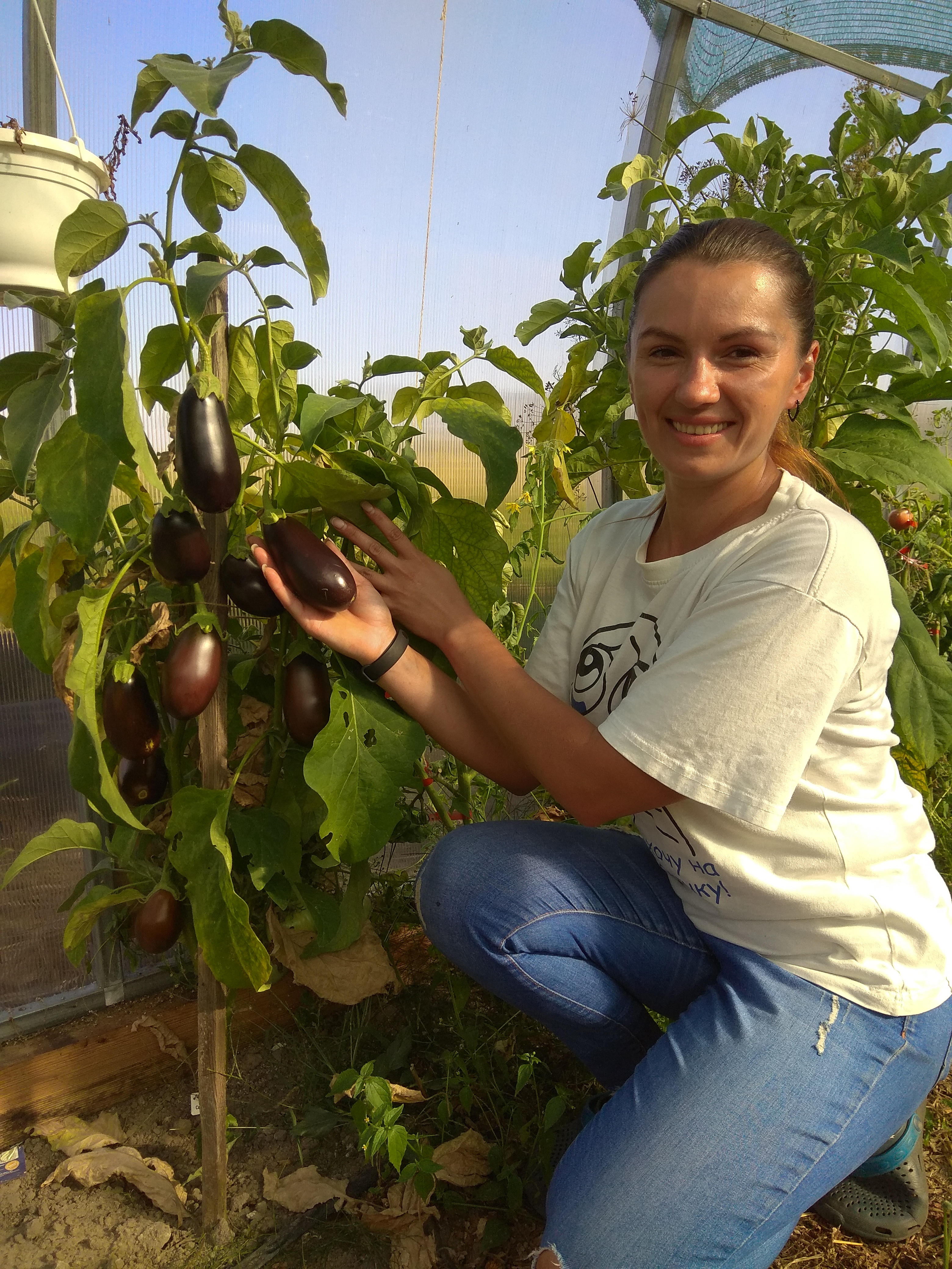 Поряд з помідорами вона виростила три сорти баклажанів: звичні нам — темні, а ще рябенькі і навіть білі. Смаком, каже, вони майже не відрізняються. А от два сорти динь зовсім не схожі.