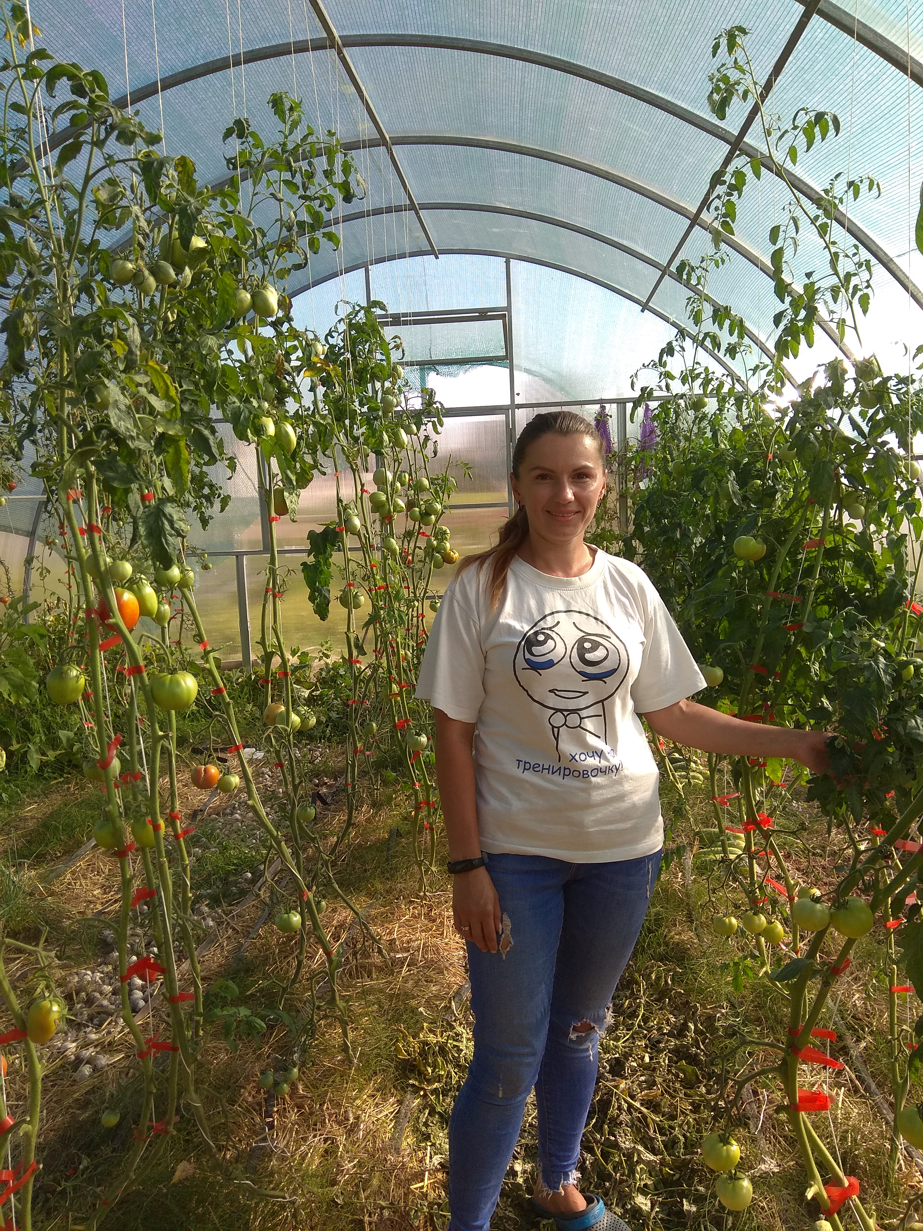 А тому на городі господині чого тільки не знайдеш. В окремій тепличці вона висадила і сформувала понад 60 кущиків огірків. У іншій теплиці височіють помідори. Частину врожаю вже зібрала і реалізувала, але зелених плодів ще доволі.