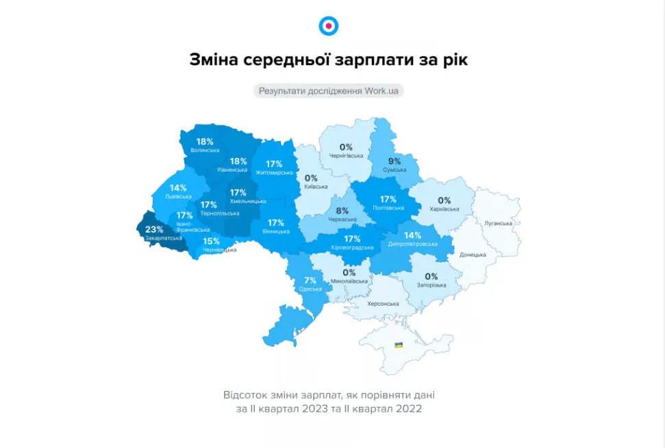 Зростання виплат є найбільш помітним у західних регіонах країни (досягаючи піку в 23%) та центральних областях України (зі збільшенням до 17%). Щодо регіонів, близьких до лінії фронту, найбільш визначним є Дніпропетровська область, свідчать дані популярного кадрового порталу.