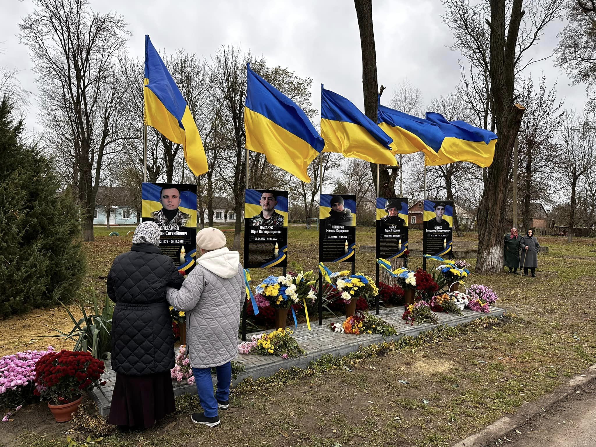 Хвилиною мовчання односельці вшанували пам’ять загиблих захисників України, а почесну місію відкриття стел надали найріднішим Героїв.