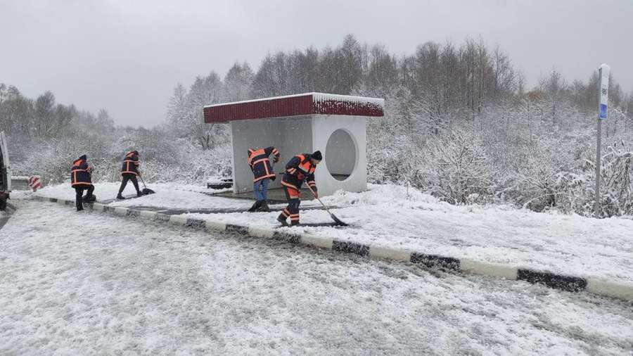 Тривають роботи з прибирання снігу, зокрема в місцях зупинки громадського транспорту.