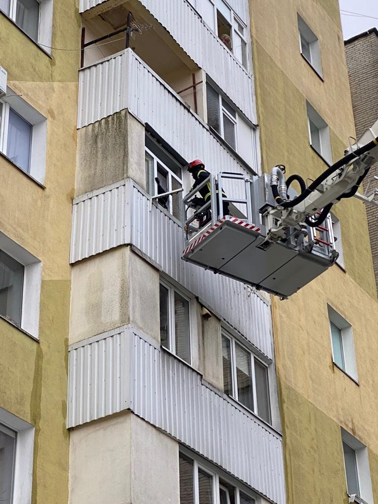 Рятувальники за допомогою колінчастого підйомника через балкон потрапили в помешкання, відчинили двері зсередини і надали доступ батькам до дитини.
