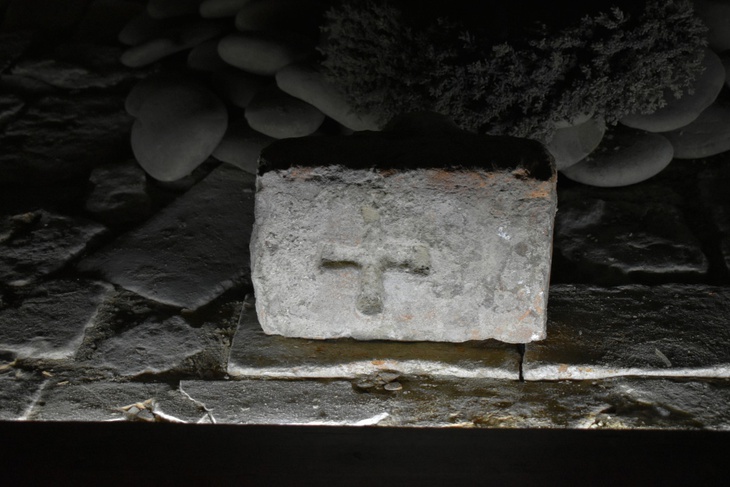 Потім передають з рук у руки давню цеглину, позначену хрестом архімандрита і намагаються визначити її вагу. Цеглина добротна, зроблена на совість, дещо квадратна на вигляд.