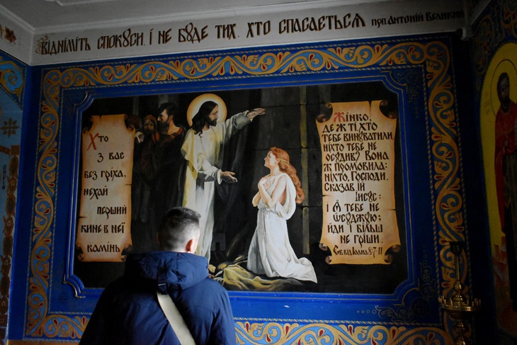 Хтось фотографується на фоні храму та цікавинок прилеглої території чернечої обителі. Хтось фільмує розповідь екскурсовода. Дехто стиха переговорюється між собою, розглядаючи внутрішнє оздоблення храму та образи святих на старовинних іконах.