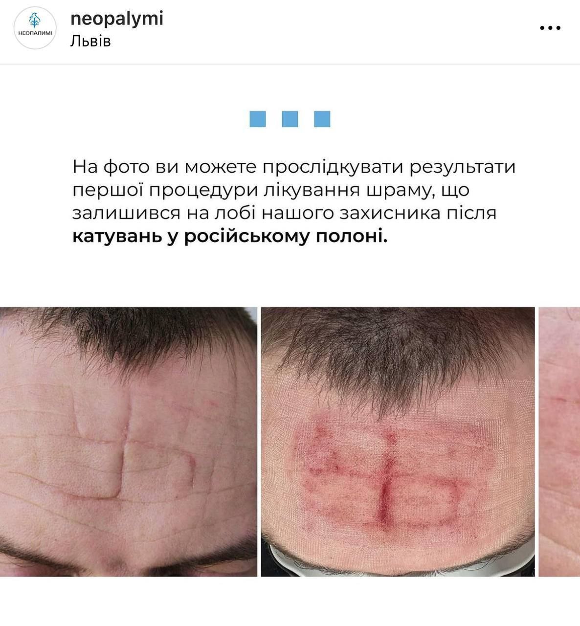 Окупанти катували полоненого українського бійця та вирізали на його лобі свастику. Нині військовий проходить реабілітацію та позбувається рубця – його шліфують лазером.