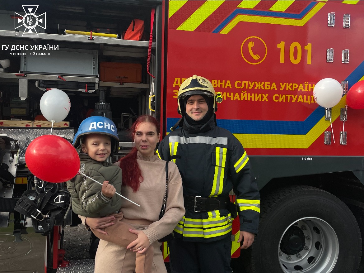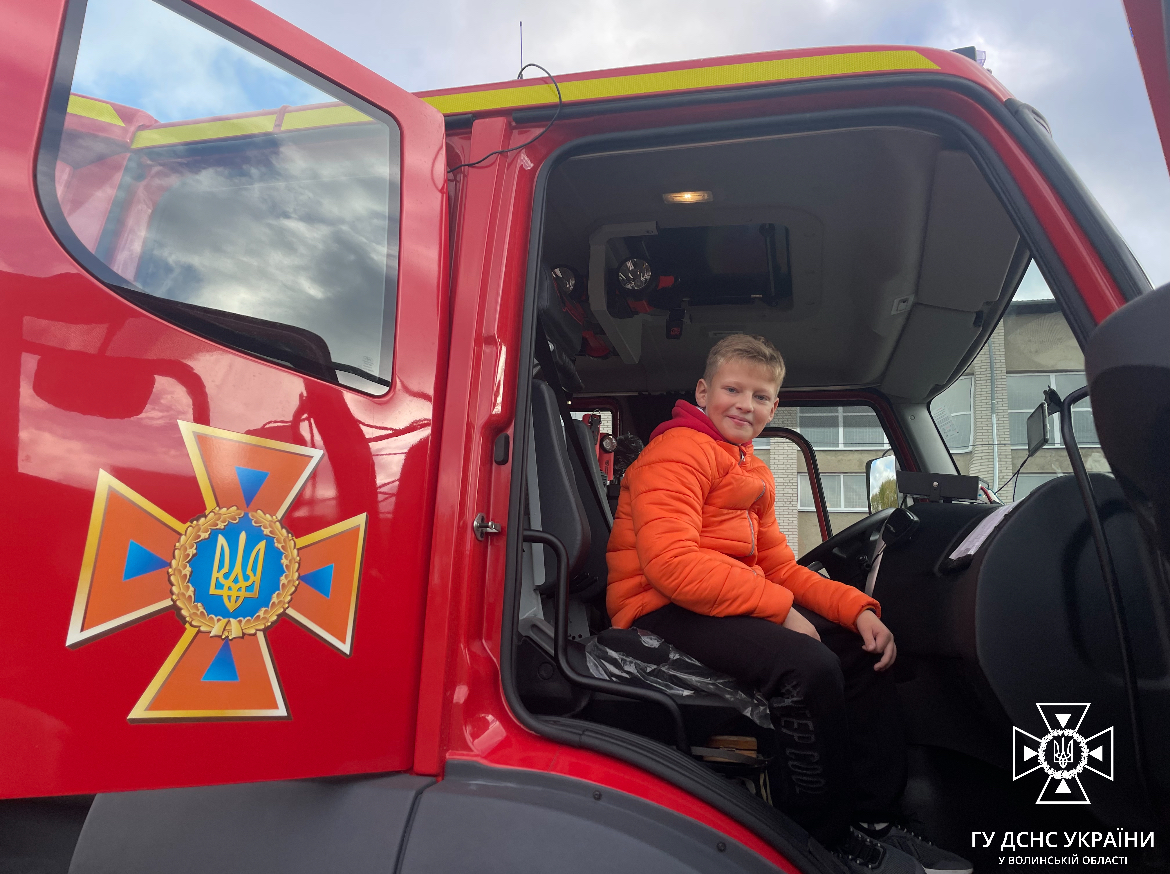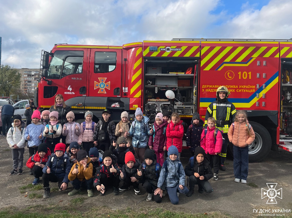 На подвірʼї ліцею №11 м. Ковеля для присутніх вогнеборці встановили пожежну локацію - червонобокий спецавтомобіль, дозволяли учасникам заходи ознайомитися з аварійно-рятувальним обладнанням та розповіли дітям про особливості роботи рятувальника.