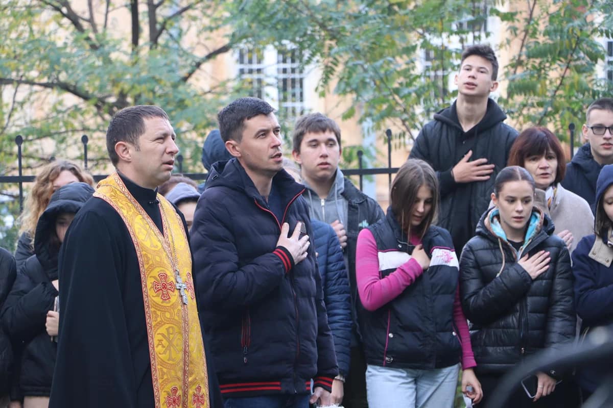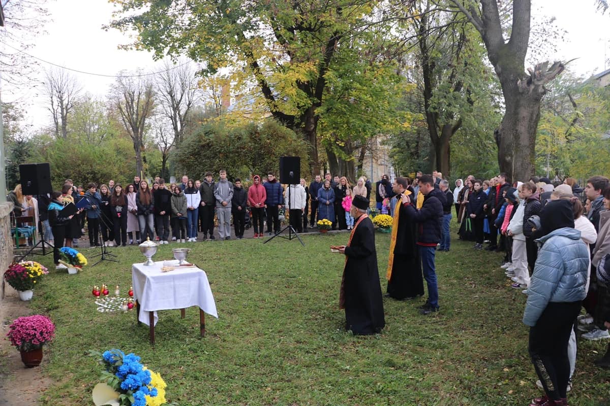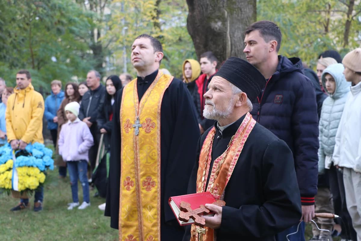 На території ліцею зібрались рідні Тараса, представники влади, школярі ліцею, його викладачі – усі, хто знали військовослужбовця та вирішили віддати шану захиснику.