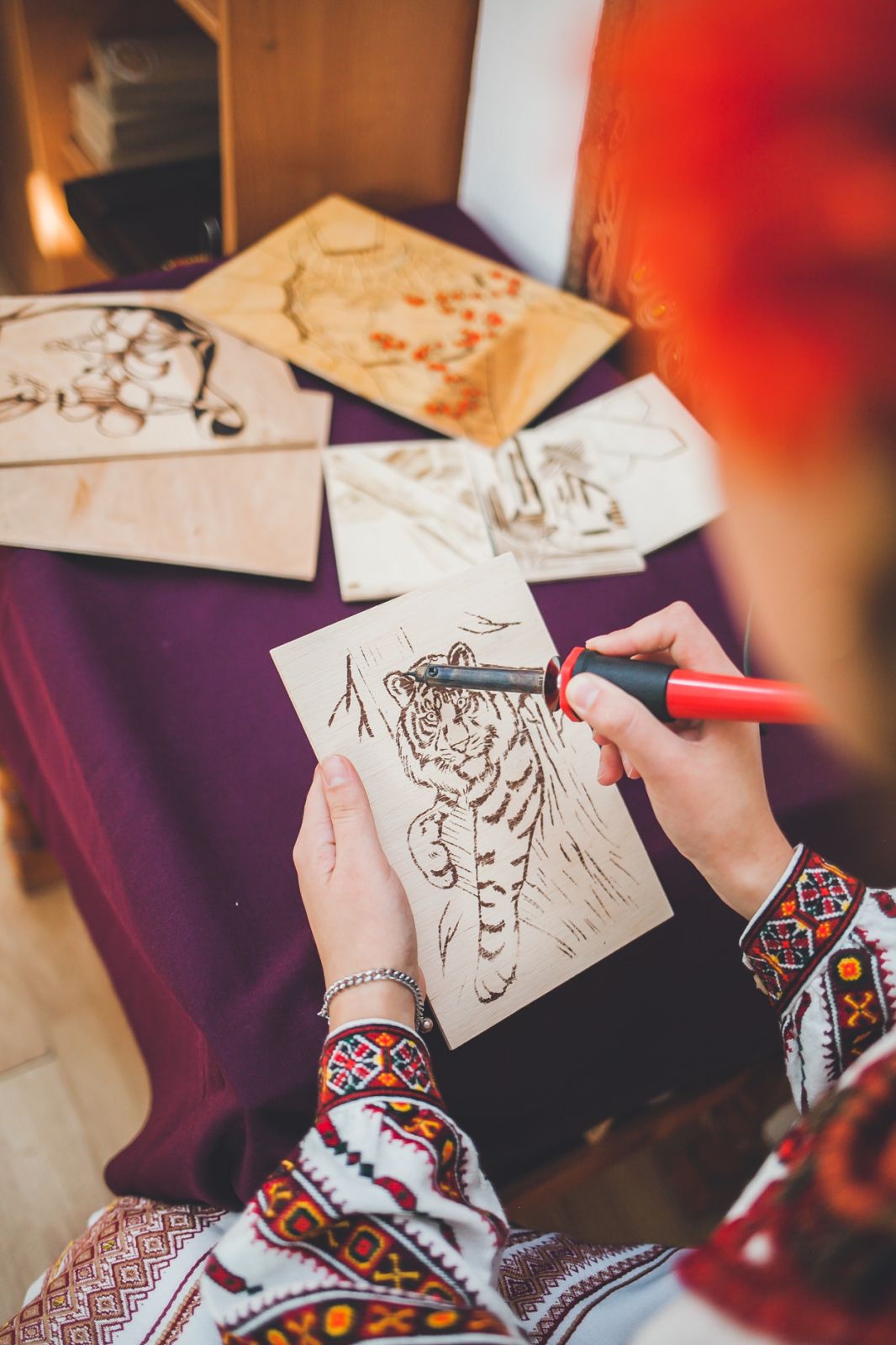Ангеліна Корнійчук із села Бузаки Камінь-Каширської громади створює цікаві пірографії, випалюючи розпеченим металом зображення на дерев’яних поверхнях.