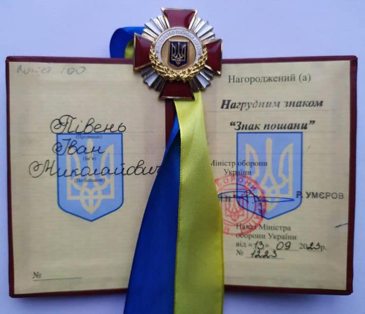 Іван Півень у грудні 2021 року повернувся зі строкової служби. А з перших днів повномасштабного вторгнення не зміг бути осторонь й став до лав добровольців, щоб дати відсіч ворогу. У вересні цього року боєць отримав, відзнаку Міністерства оборони України «Знак пошани». Цим знаком нагороджують військовослужбовців за значний особистий внесок у справу розбудови, розвитку та забезпечення життєдіяльності ЗСУ.
