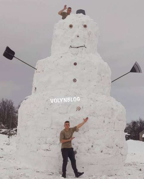 У селі на Волині місцеві мешканці зліпили гігантського сніговика – він навіть вищий за снігову бабу, яку зареєстрували як рекордно високу на Одещині.