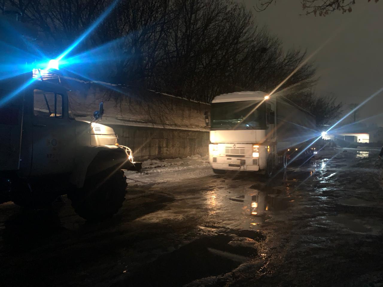 Рятувальники аварійно-рятувального загону спеціального призначення за допомогою спеціального обладнання відбуксирували вантажне авто з проїжджої частини дороги.