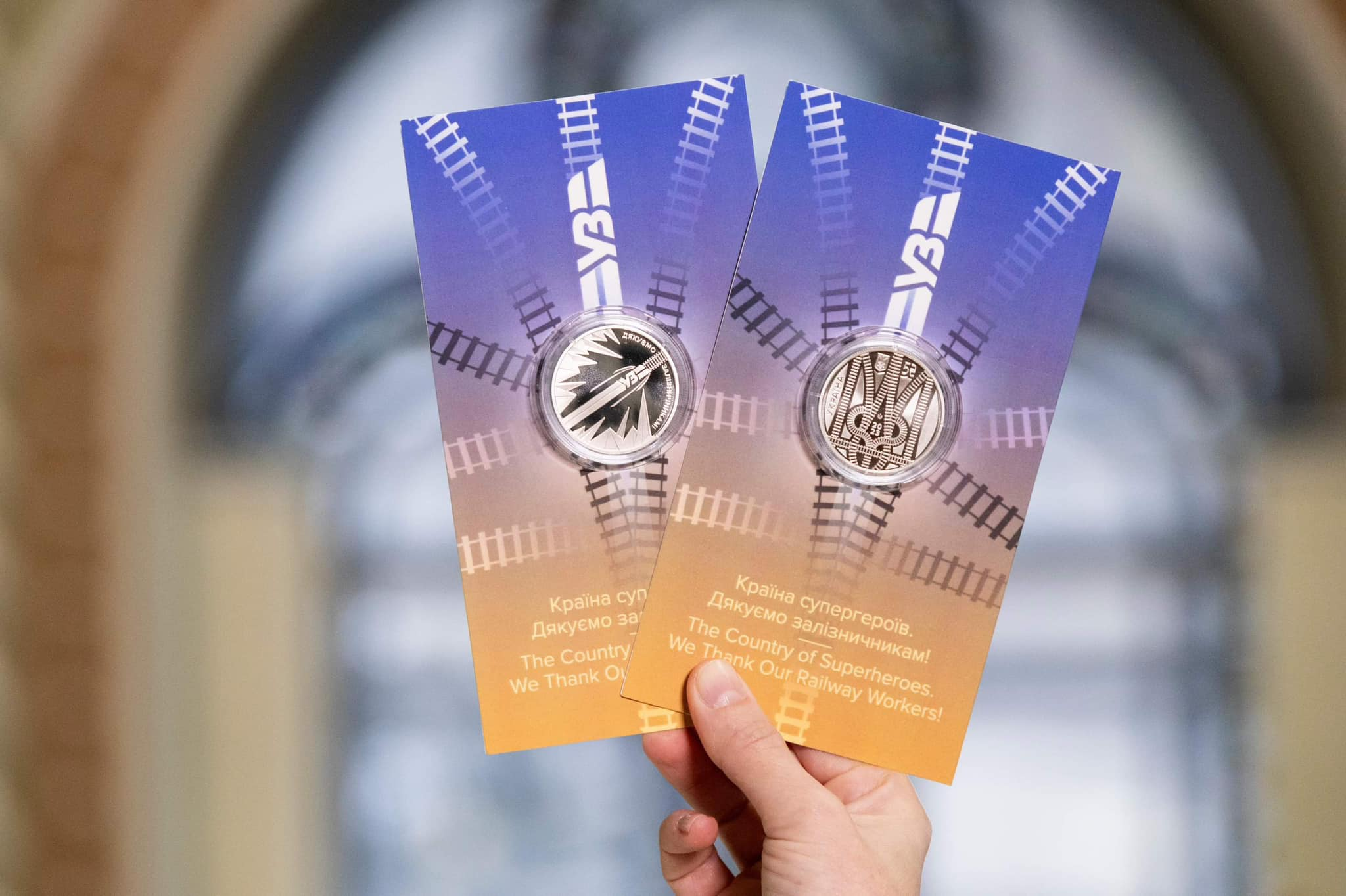 Презентація монети відбулася у день 32-ї річниці створення АТ «Укрзалізниця». Пам'ятна монета має назву «Країна супергероїв. Дякуємо залізничникам!». Монета продовжує серію «Безсмертна моя Україно» та має номінал 5 гривень.