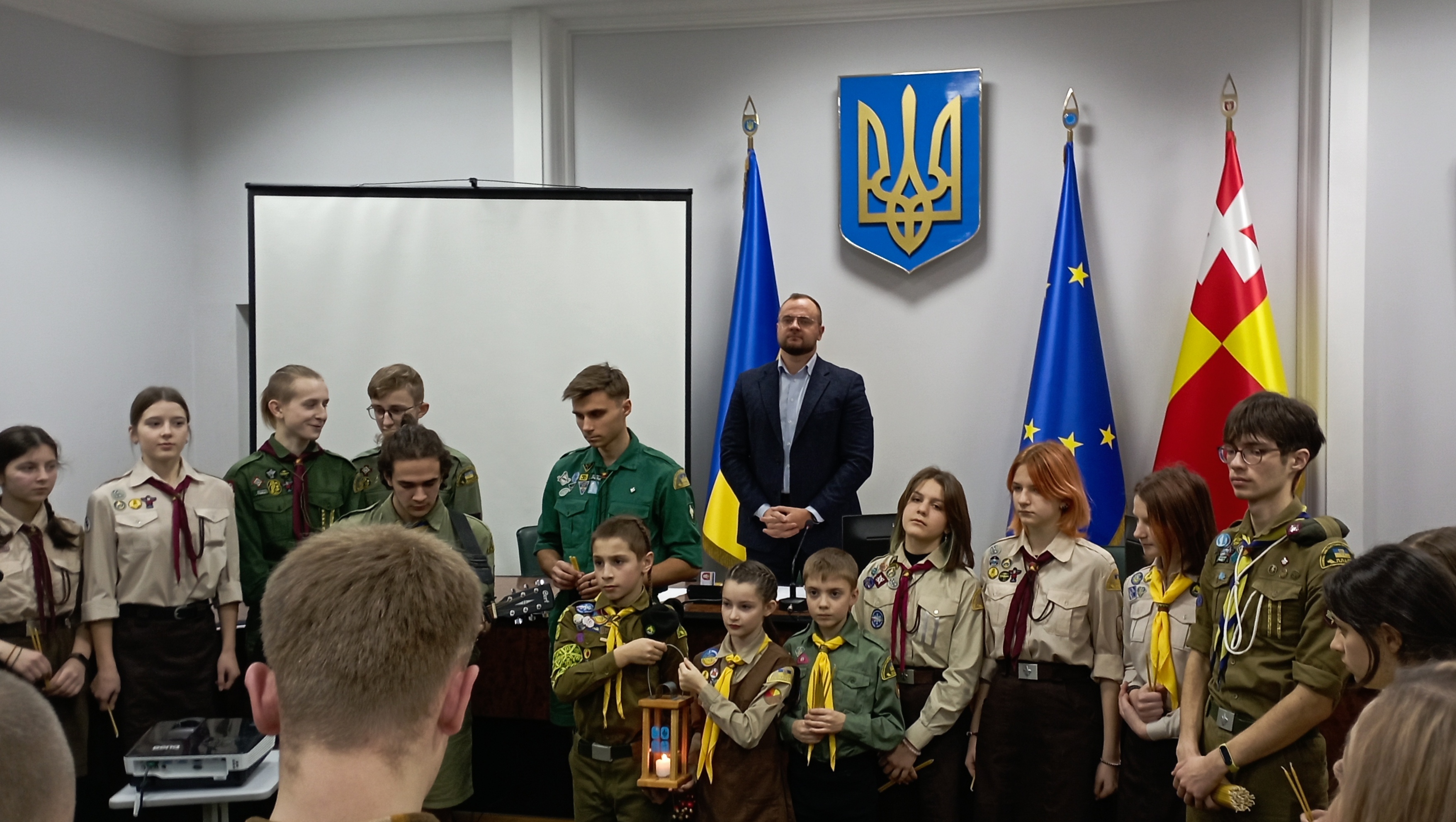 На початку пленарного засідання 54-ої сесії Луцької міської ради члени національної скаутської організації України “Пласт” передали міському голові, депутатам та усім присутнім у залі Вифлеємський вогонь миру.