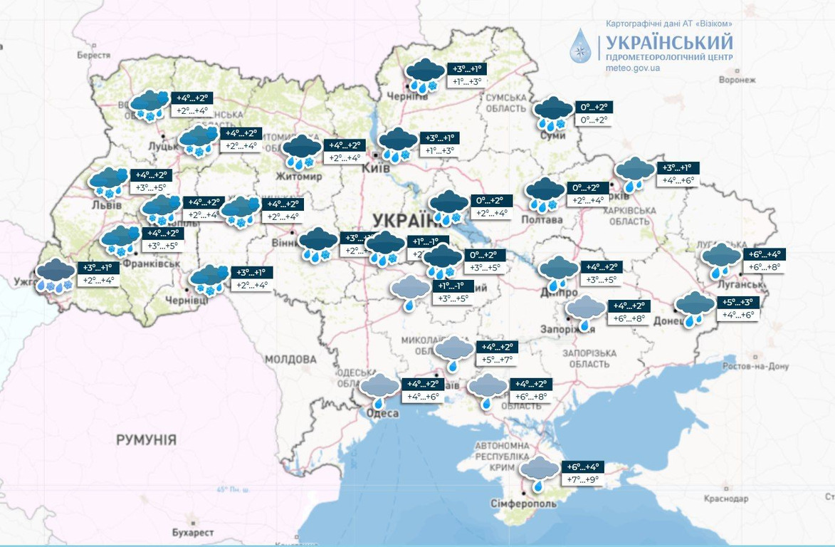 Температура повітря вночі на території України коливатиметься від 4° тепла до 1° морозу. Вдень очікується від +1 до +6°. На півдні та південному сході країни температура вище: вночі +2-7°, вдень +5-10°. У Карпатах залишається холодно: вночі від -3 до -8°, вдень від 0° до 5°.