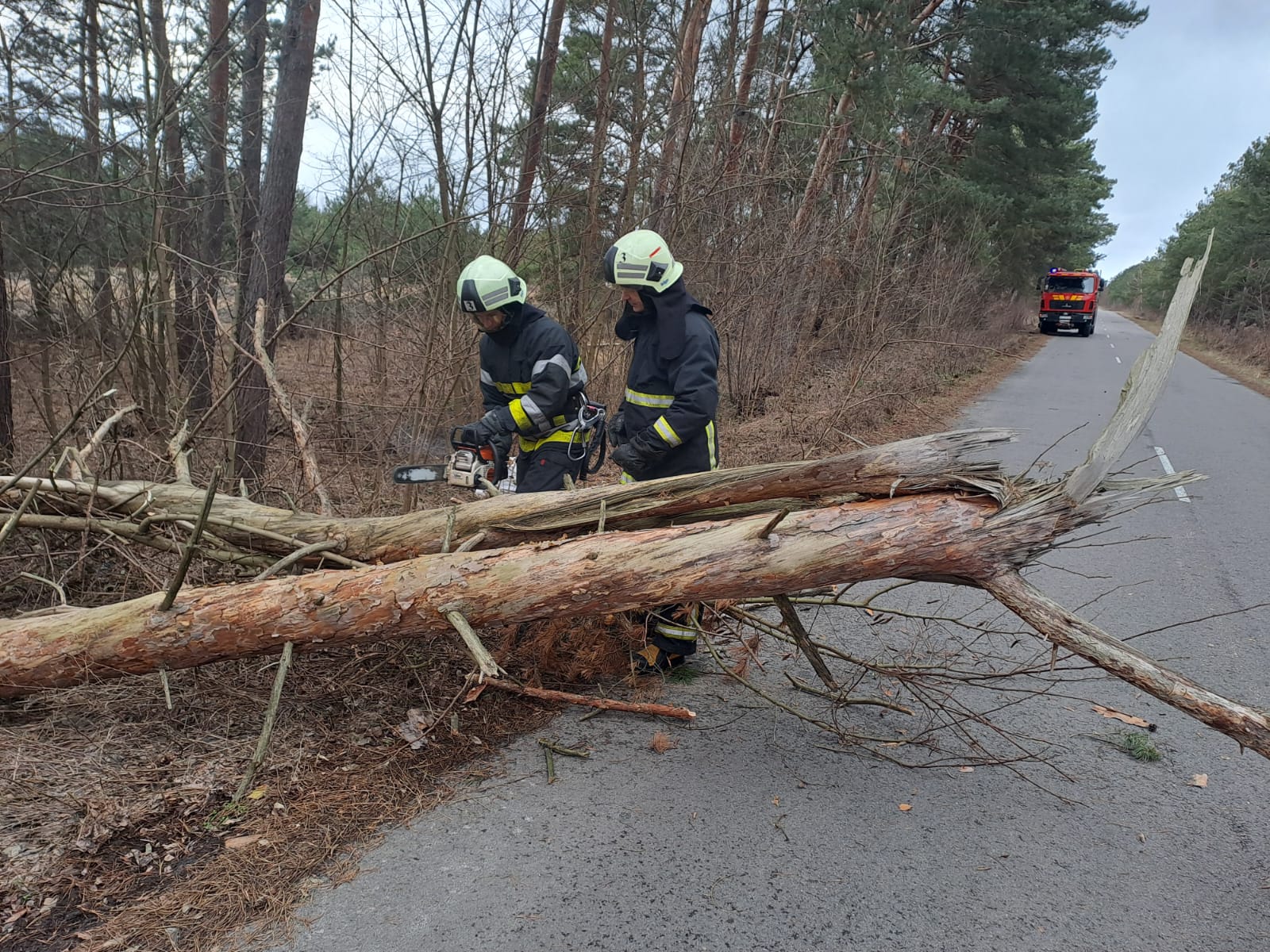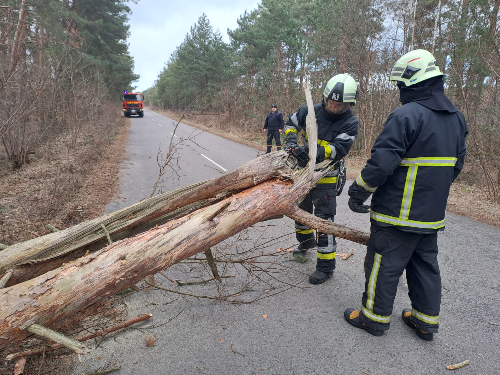 Рятувальники 3 ДПРЧ, які прибули за викликом, за допомогою бензопили розрізали дерево й відтягнули його з проїжджої частини.