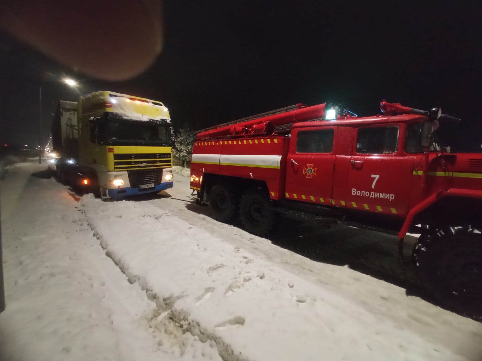 Зокрема, ввечері між с. Соловичі та с. Мокрець Ковельського району застряг на узбіччі снігоочищувальний трактор. Рятувальники 17 ДПРЧ селища Турійськ за допомогою тросу відбуксирували спеціальну техніку.