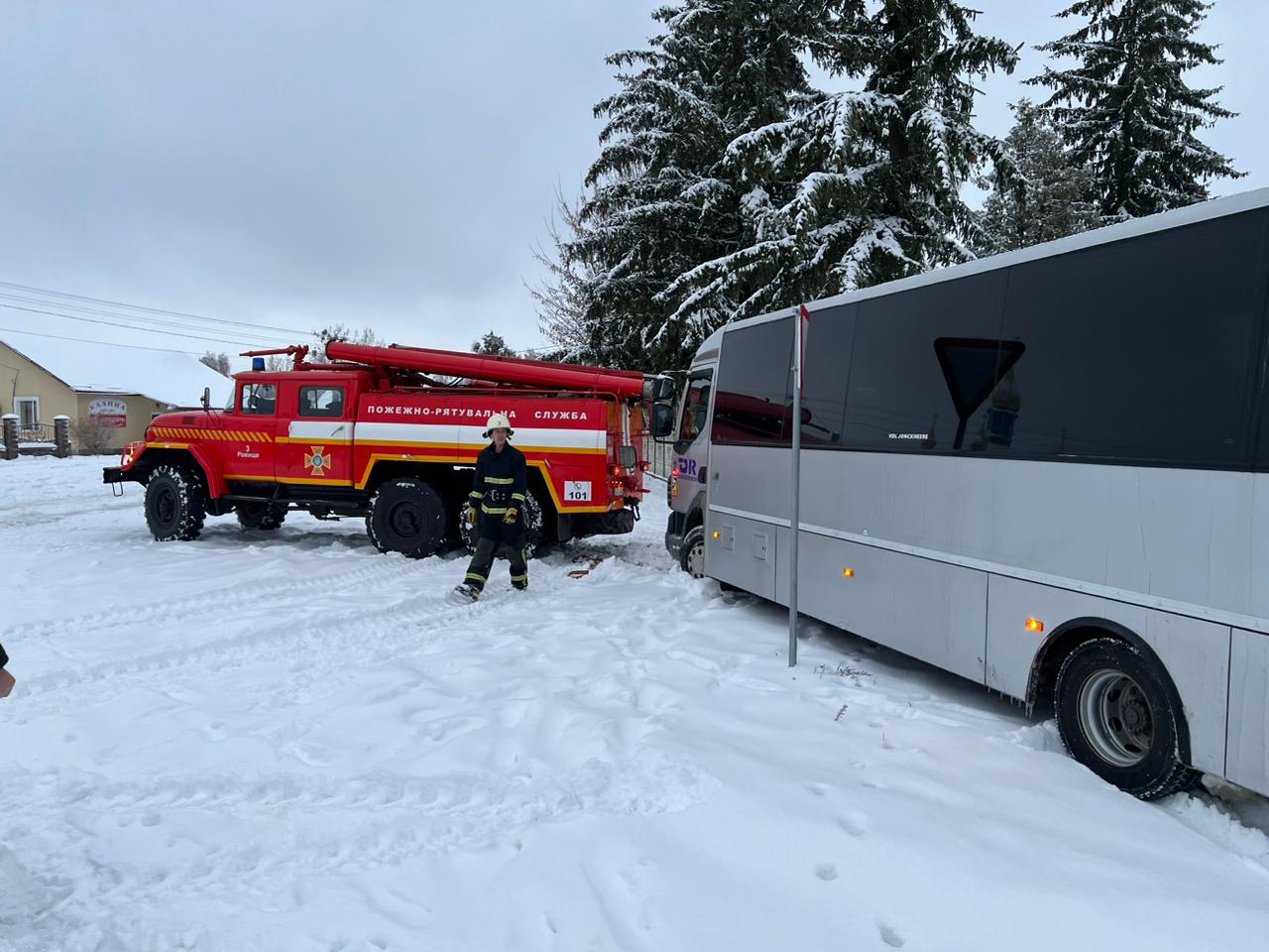 Поблизу сіл Боровичі, Вишенька Луцького району та с. Марковичі і м. Устилуг Володимирського району у снігові замети потрапили 4 автобуси з людьми — рятувальники за допомогою тросу відбуксирували автобуси.