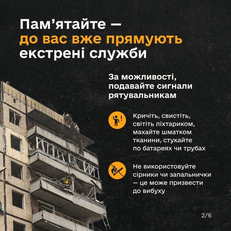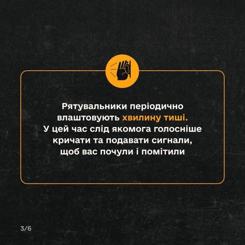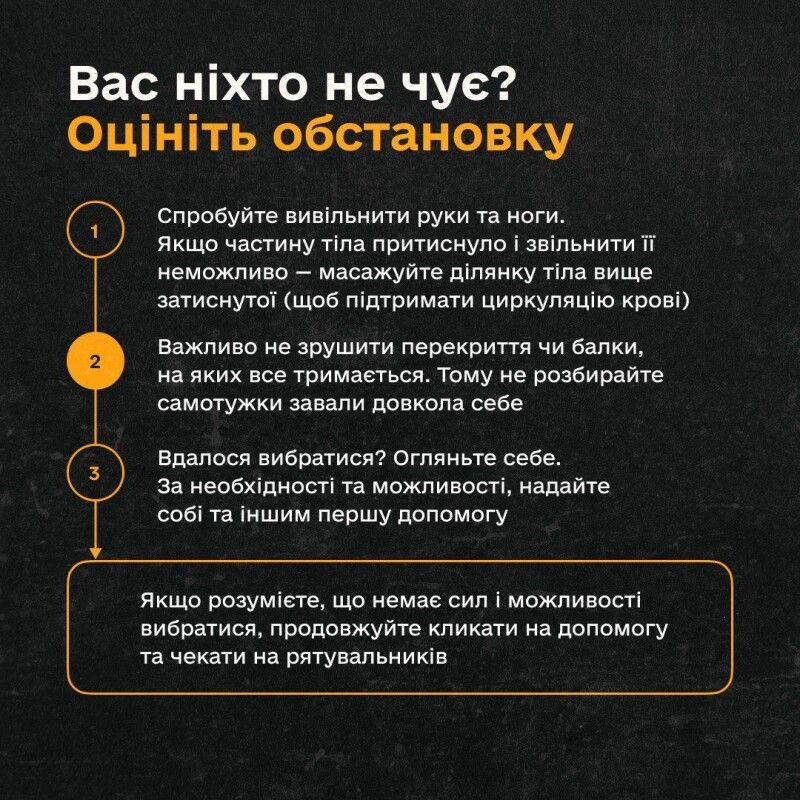Рятувальники пояснили, що робити, якщо потрапили під завал. Важливі поради, які рятують життя.