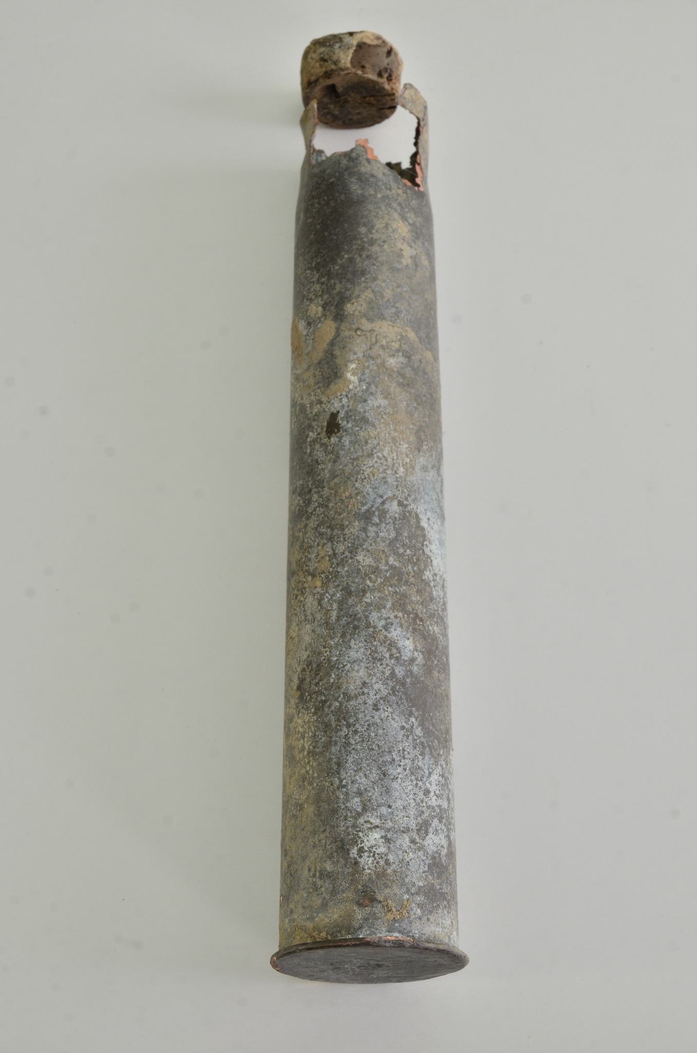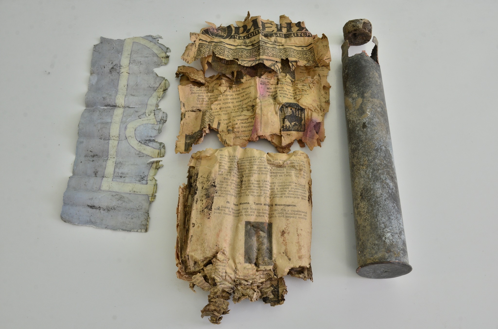 Волинський краєзнавчий музей має тепер у своєму надбанні ще один цікавий артефакт – доказ того, як змінні окупаційні режими вели боротьбу з українською ідентичністю. Його знайшли на розораному полі в околицях Луцька. Мова про артилерійську гільзу із схованими у ній сторінками українських друкованих видань та національною символікою.