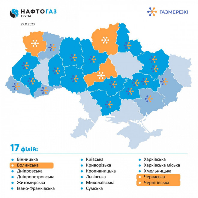 Нині по всій державі компанія «ГАЗМЕРЕЖІ» забезпечує 7.7 млн клієнтів силами 17 філіями.