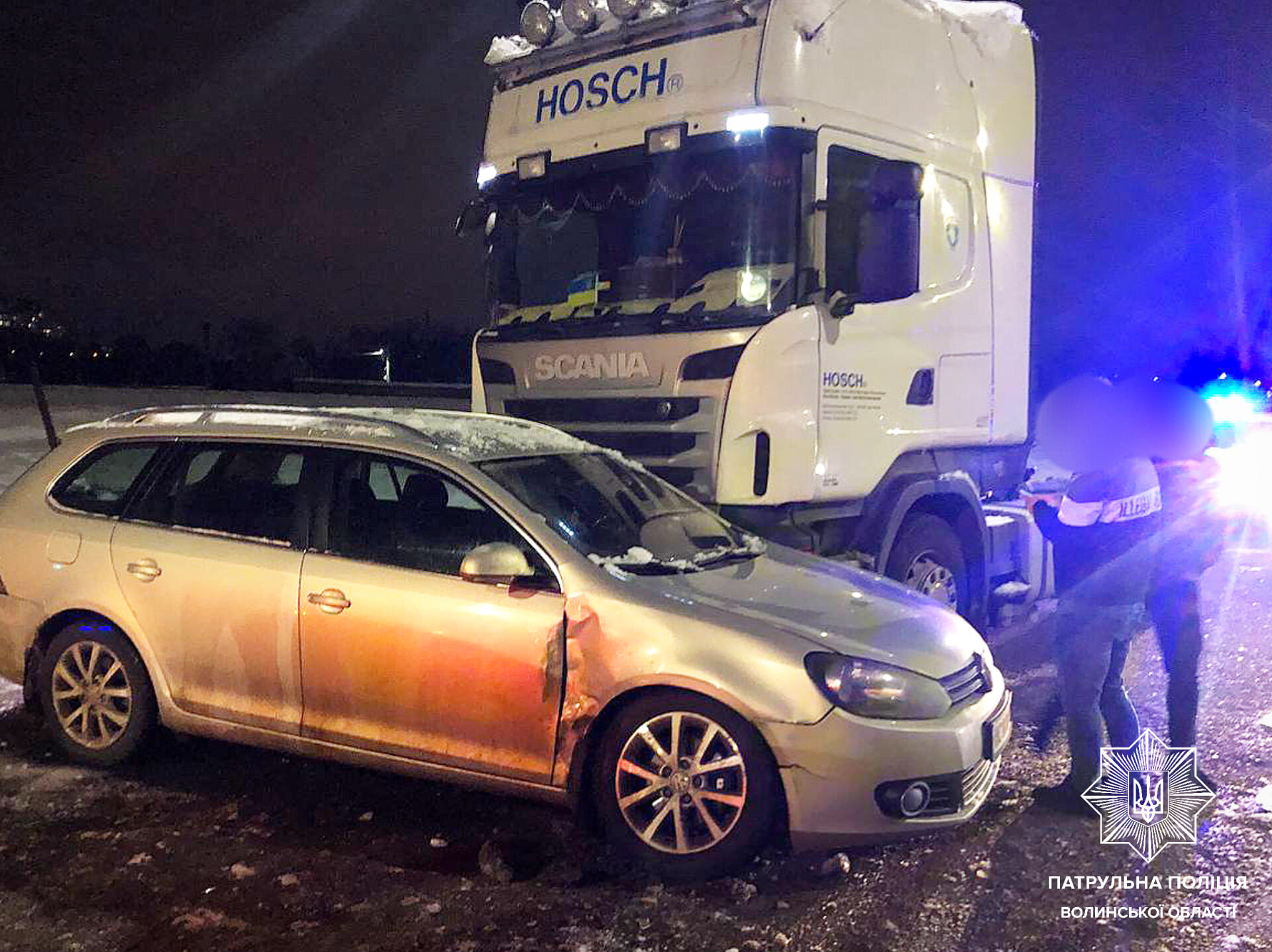 "Інспектори встановили, що водій вантажного автомобіля Scania під час об'їзду авто марки Nissan не врахував дорожню обстановку та не дотримався безпечного інтервалу. Внаслідок цього він скоїв зіткнення з легковиком Volkswagen.", — йдеться у повідомленні.