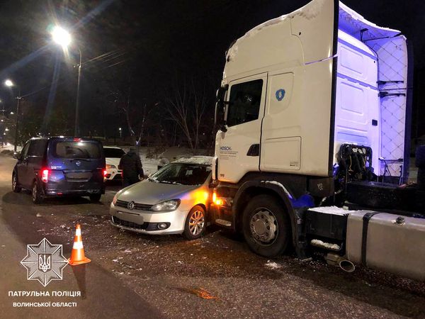 На керманича вантажівки патрульні склали протокол за ст. 124 (Порушення ПДР, що спричинило пошкодження транспортних засобів) КУпАП.