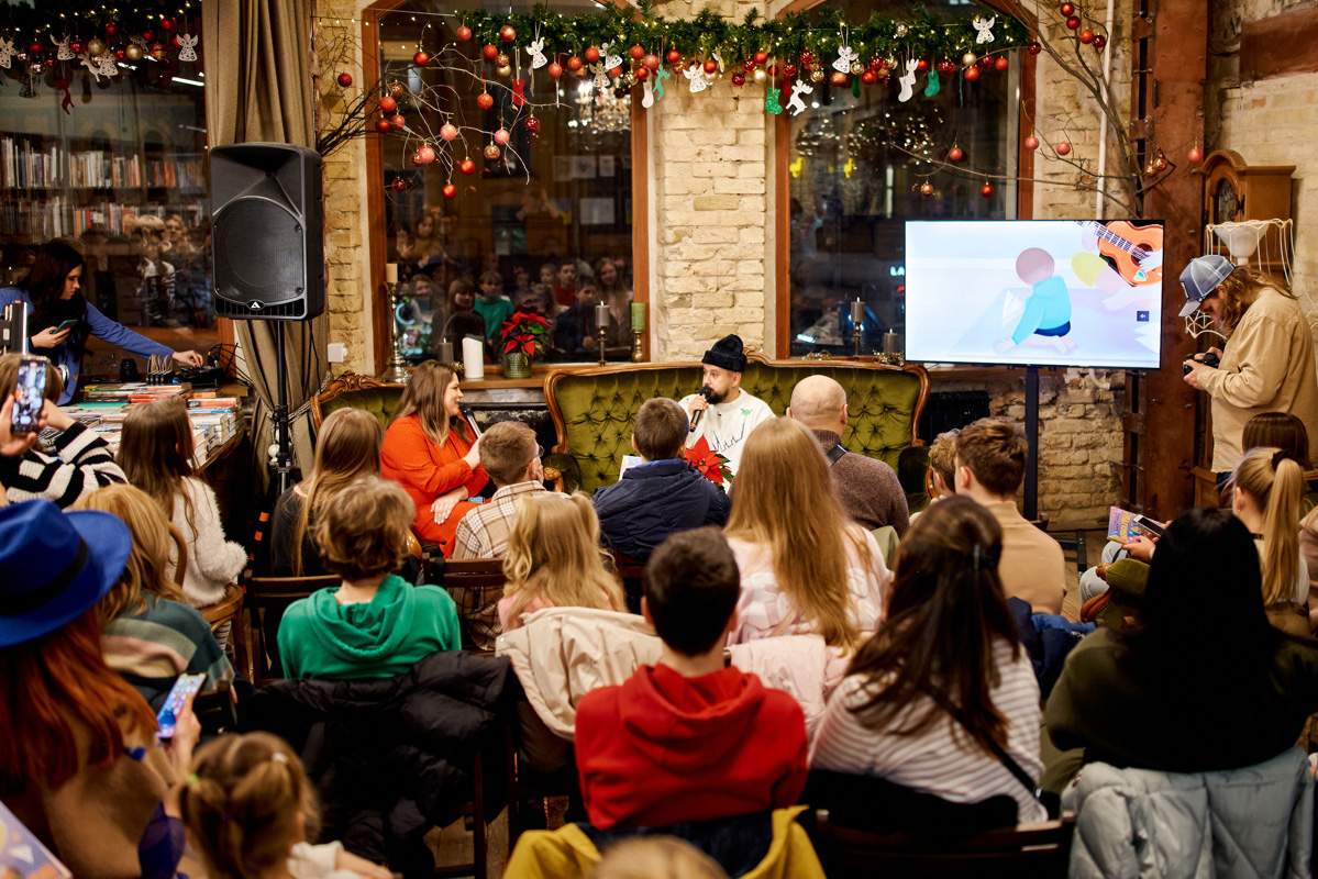 У книгарні Readeat у Києві відбулася презентація інтерактивної дитячої книжки Дмитра Монатіка «Книга мрій», яку артист та письменник-початківець влаштував для дітей українських захисників із Фонду «Діти Героїв».