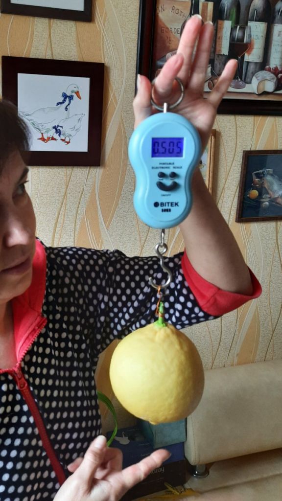 Якщо хочете, щоб лимони були більшої ваги, то на гілці варто лишити один – найкращий плід. Якщо маєте бажання мати кілька, то будьте готові, що вони будуть меншими. Плід-рекордсмен у подружжя Гусєвих – це лимон вагою близько пів кілограма і діаметром 10 сантиметрів, часто виростають тристаграмові. Деякі мають майже круглу форму, а є й овальні.