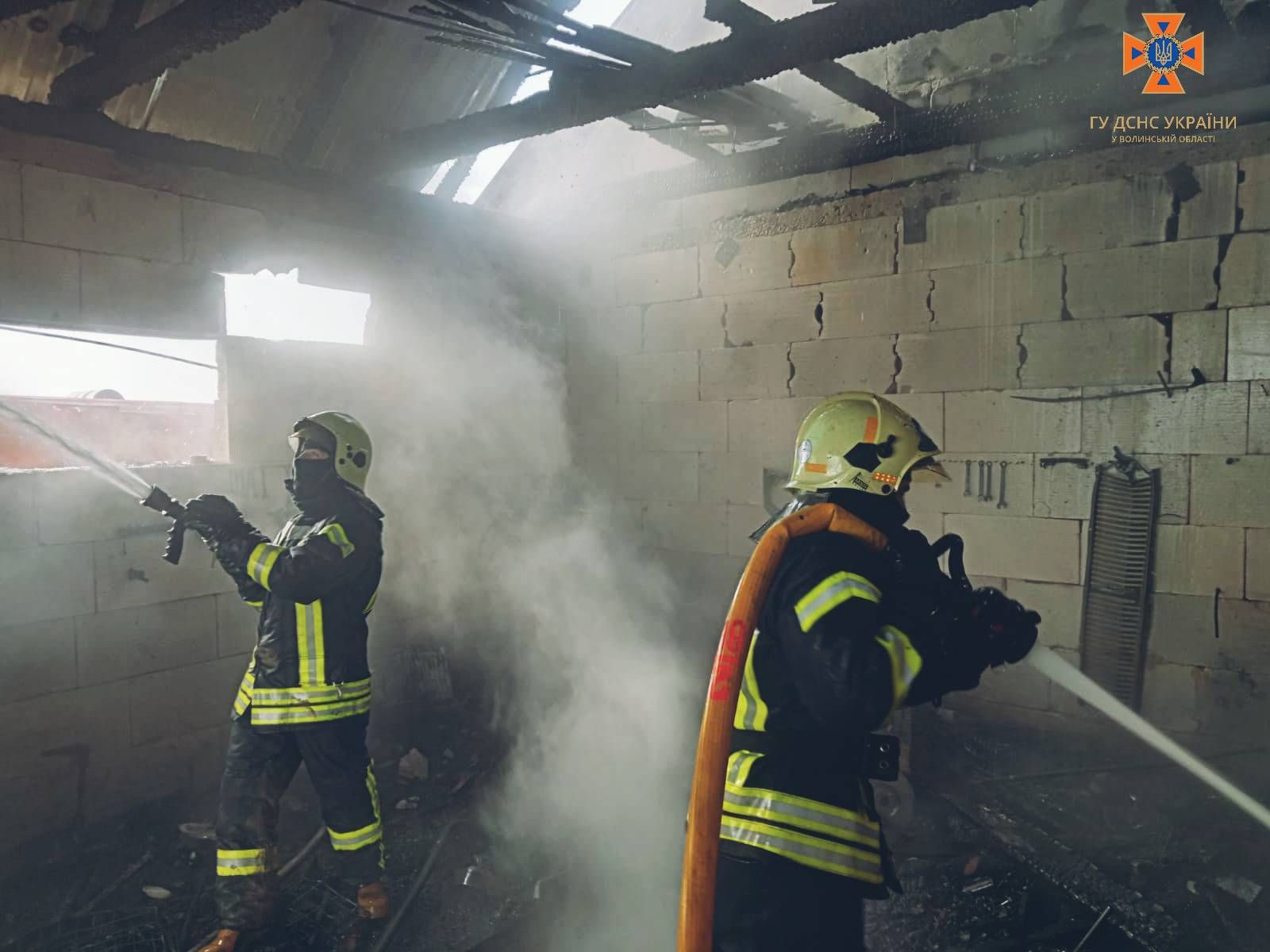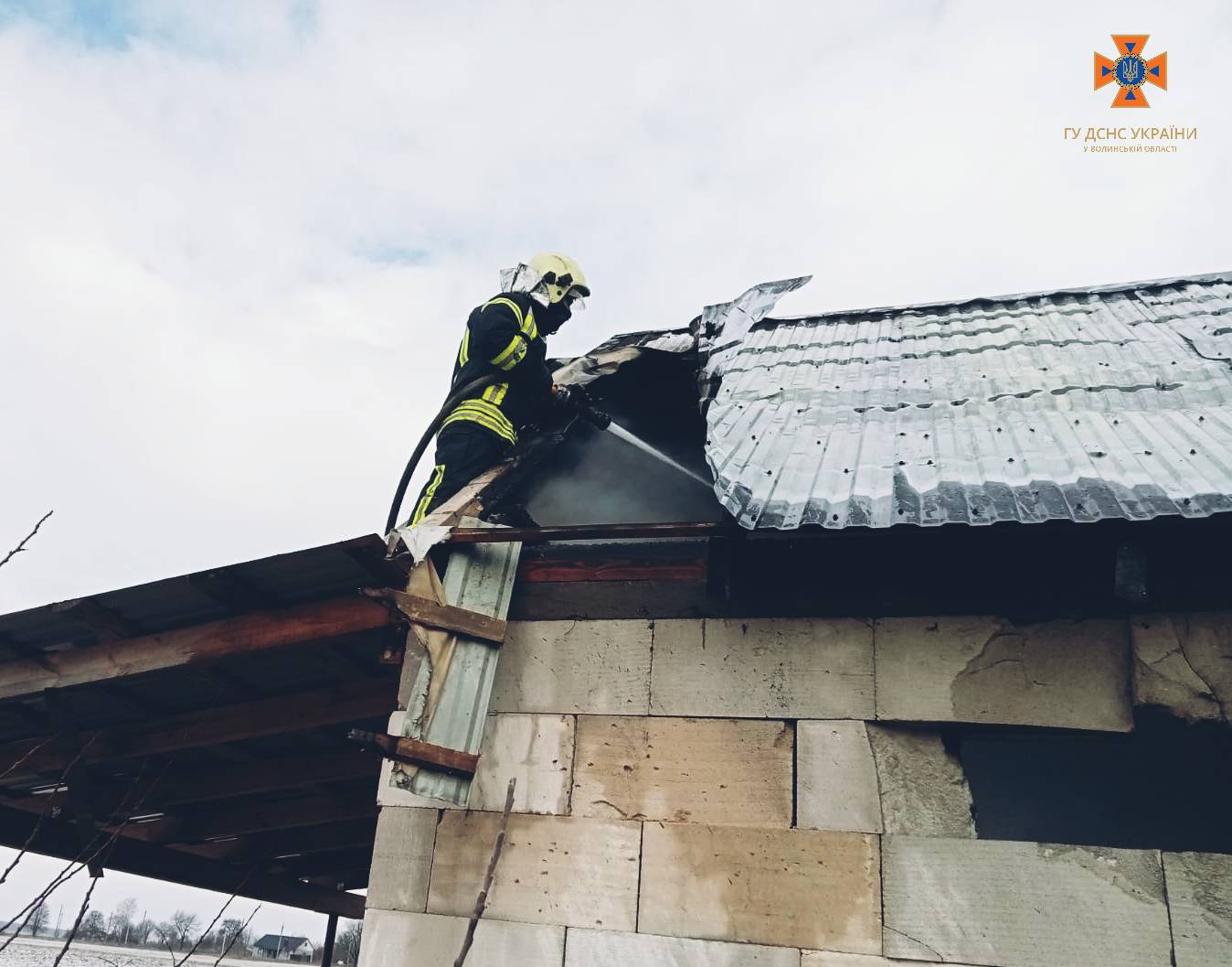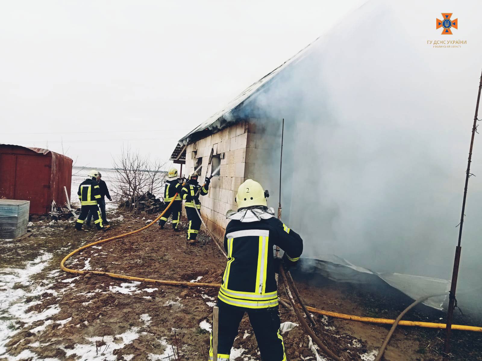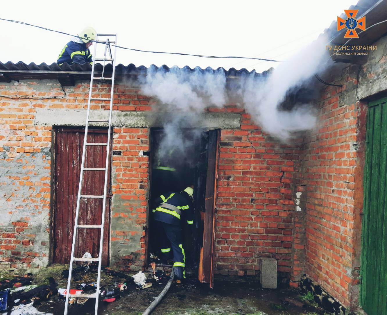 У Ківерцях рятувальники 6 ДПРЧ ліквідували пожежу в господарській споруді імовірно, горіння виникло внаслідок короткого замикання електромережі.